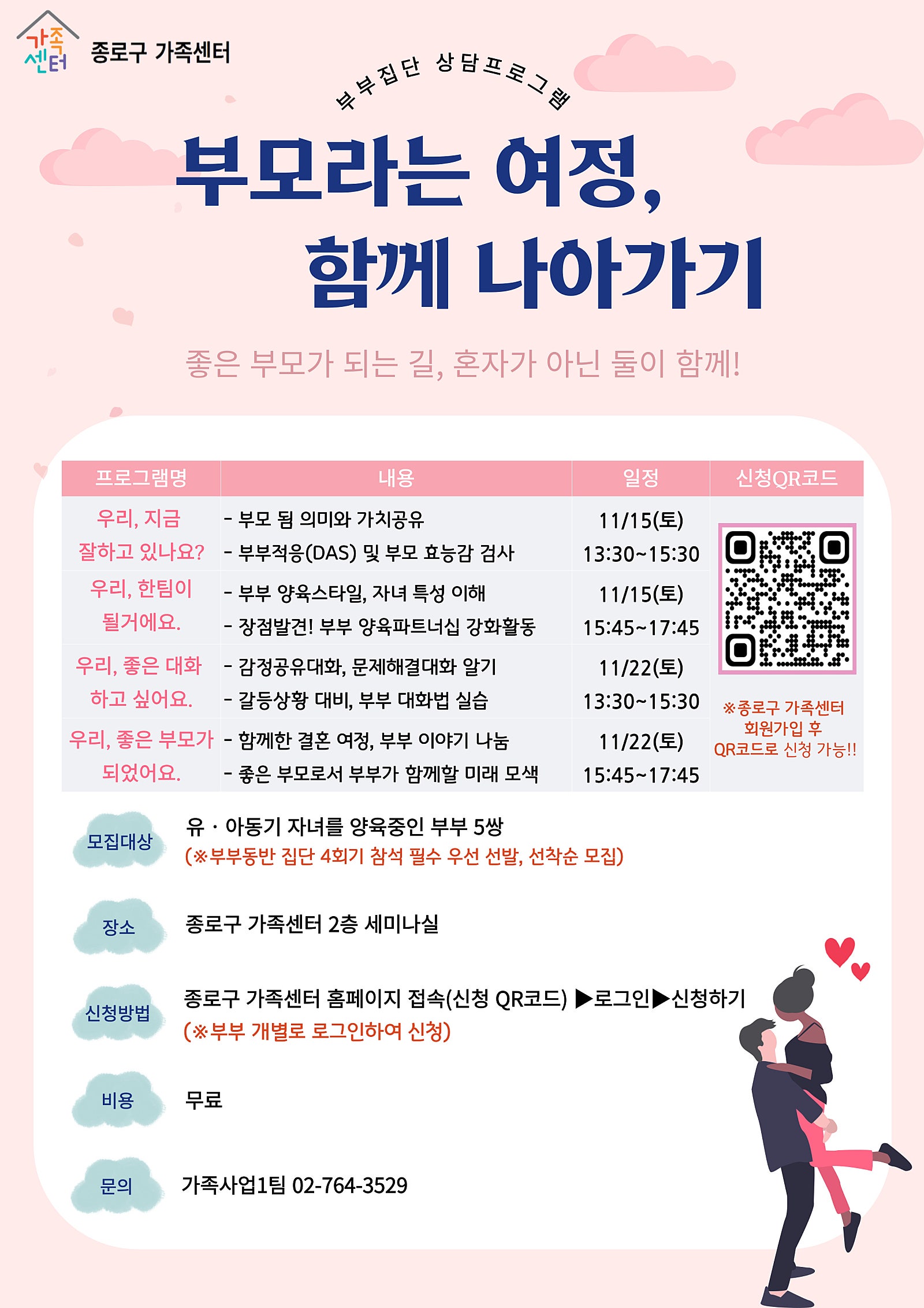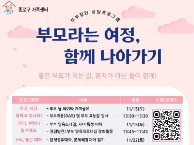 - 종로구[종로구] 2025 '부모라는 여정, 함께 나아가기' 부부집단상담 신청접수중