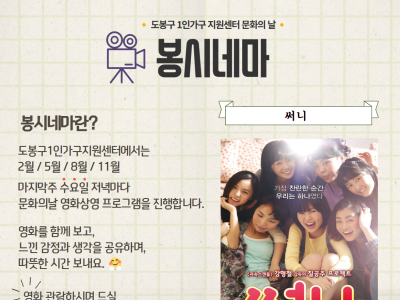 - 도봉구[도봉구] 1인가구 영화 감상 프로그램 '봉시네마' 참여자 모집 중