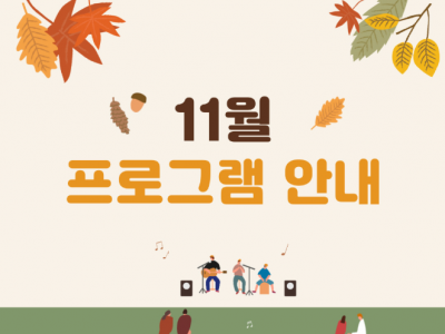 11월 센터 프로그램을 안내드리오니 많은 관심과 참여 부탁드립니다.