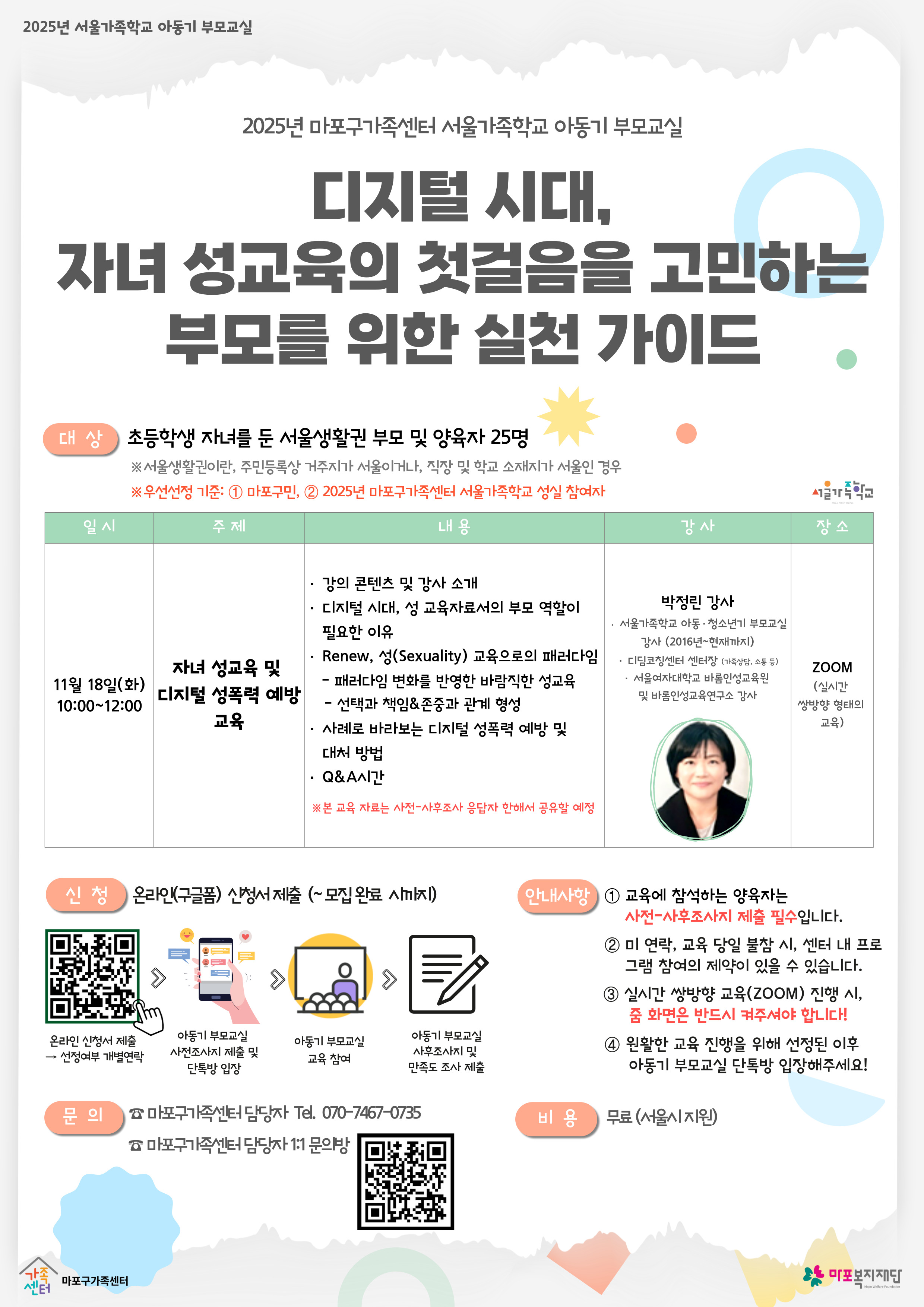 [마포구]2025년 아동기 부모교실 '자녀 성교육 및 디지털 성폭력 예방 교육' 모집