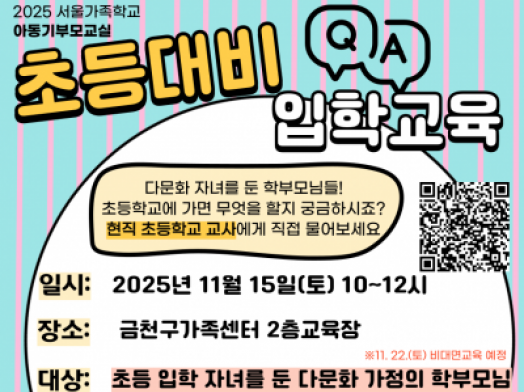 - 금천구[금천구] 2025 아동기부모교실 다문화가족대상 초등이음교육