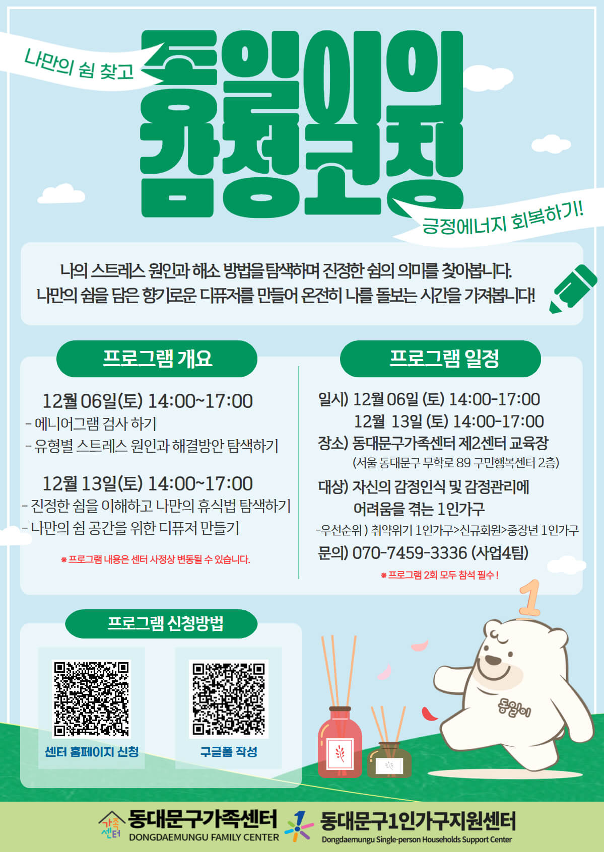 안녕하세요! 동대문구가족센터 1인가구지원팀입니다.