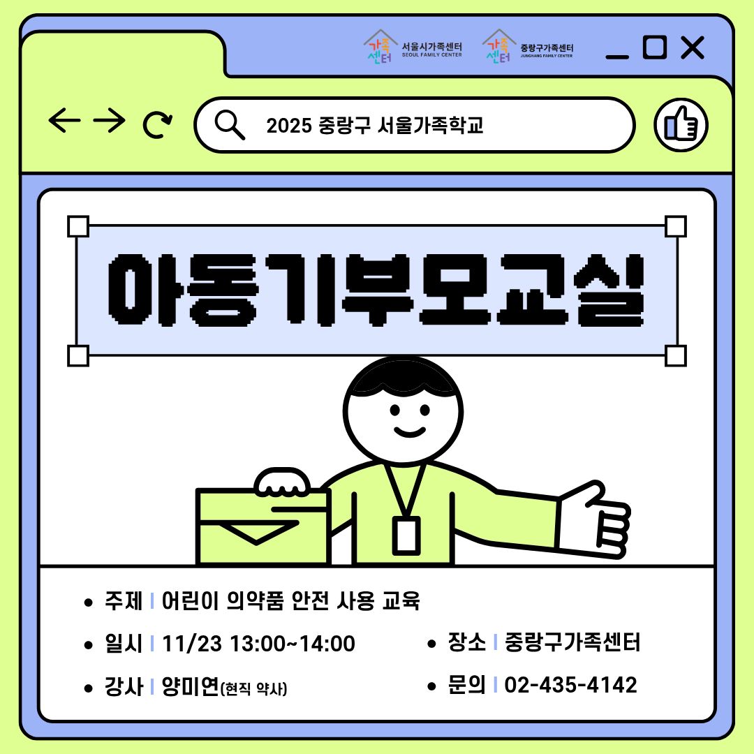 - 중랑구[중랑구] 어린이 의약품 안전사용 교육 참여자 모집