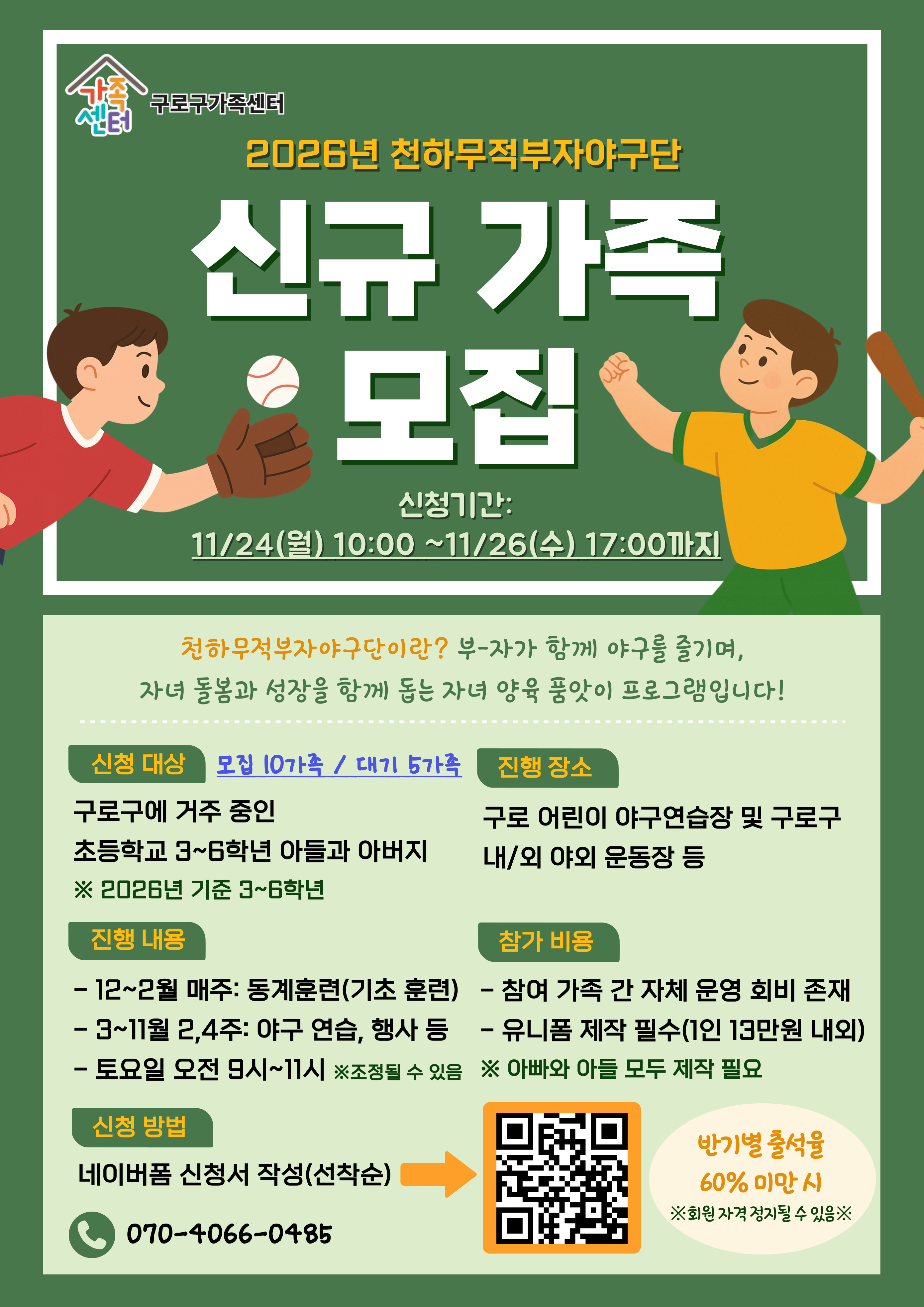 - 구로구[구로구] 2026년 천하무적부자야구단 신규 가족 모집