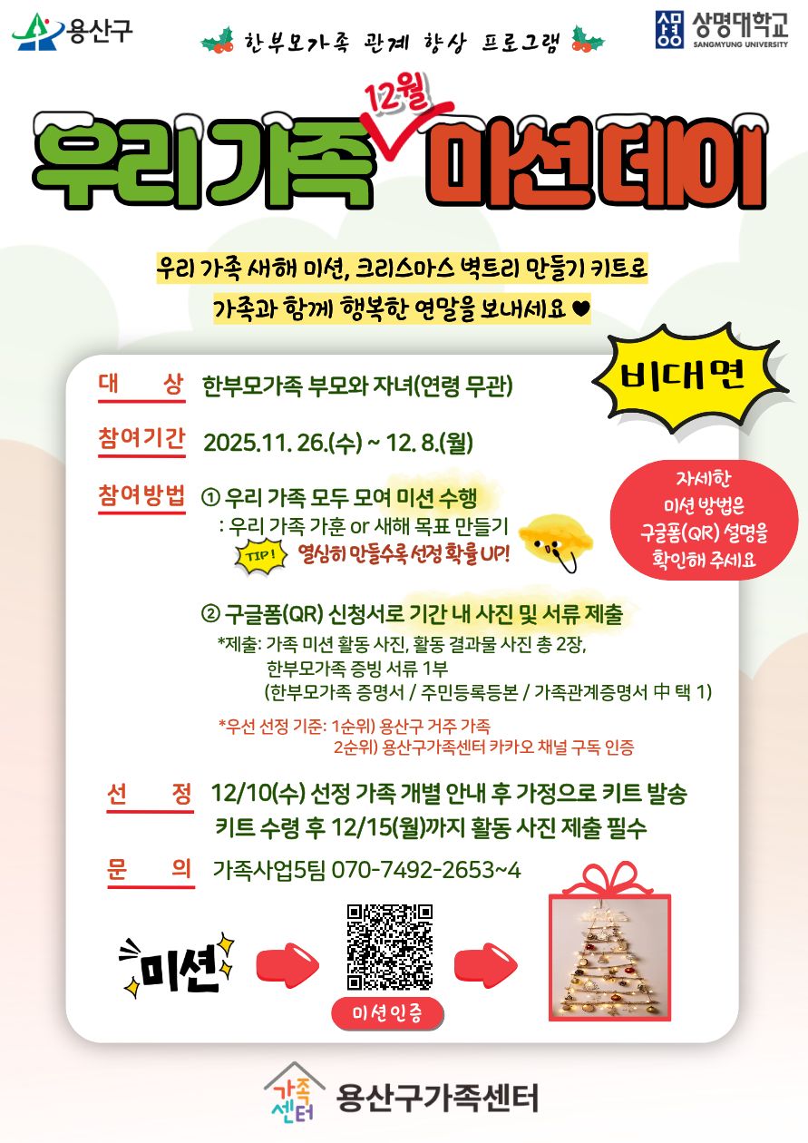 [용산구] 한부모가족 관계향상 프로그램 '우리 가족 (12월) 미션 데이'