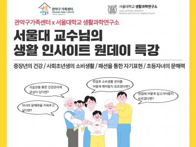 - 관악구[관악구] 서울대학교 생활과학연구소 특강 <서울대 교수님의 생활 인사이트 원데이 특강> 신청접수