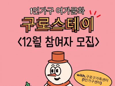 구로구가족센터(1인가구센터)에서는 1인가구의 여가문화 생활을 위해 12월 구로스테이를 진행합니다.