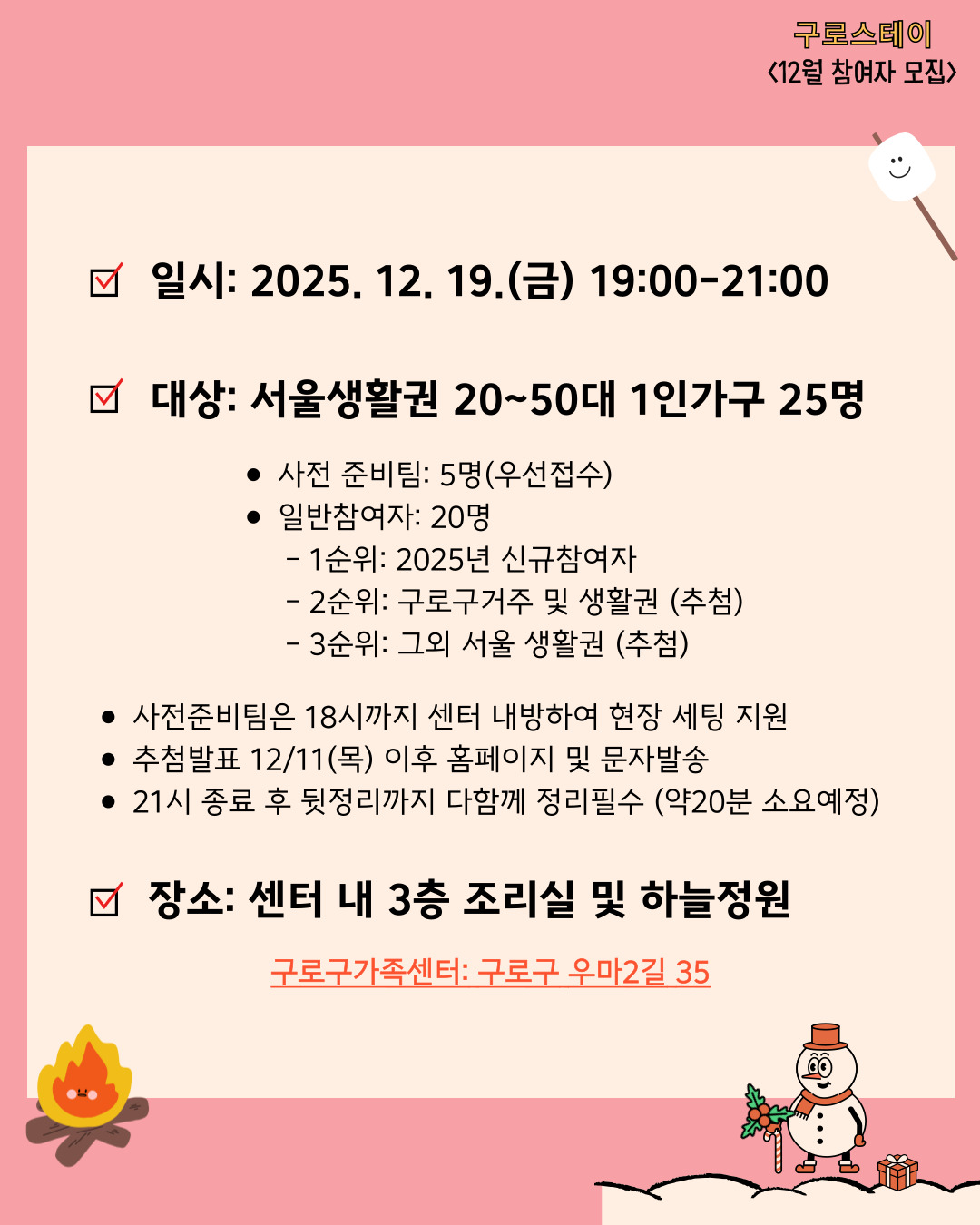 [구로구] 12월 구로스테이 참여자 모집