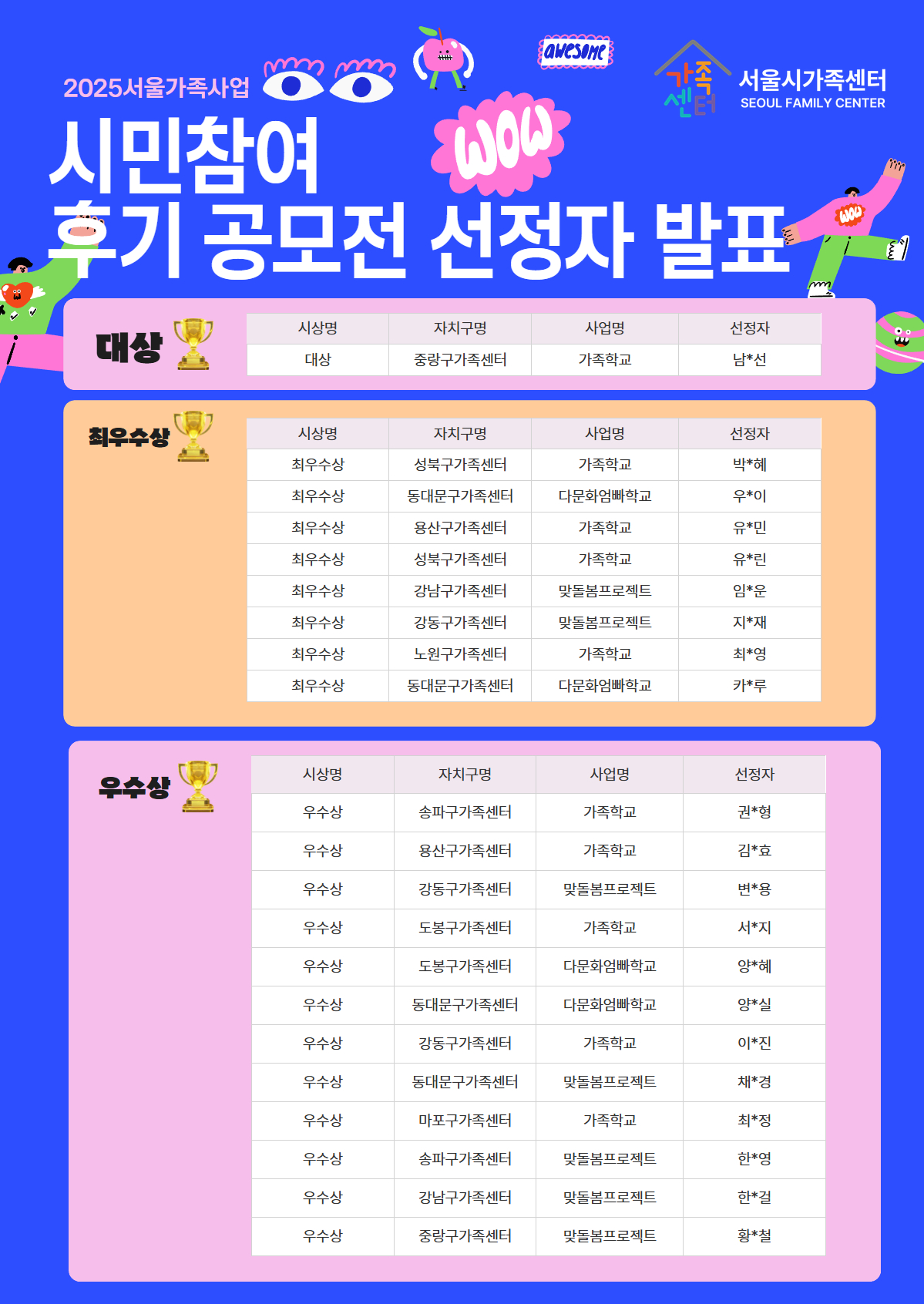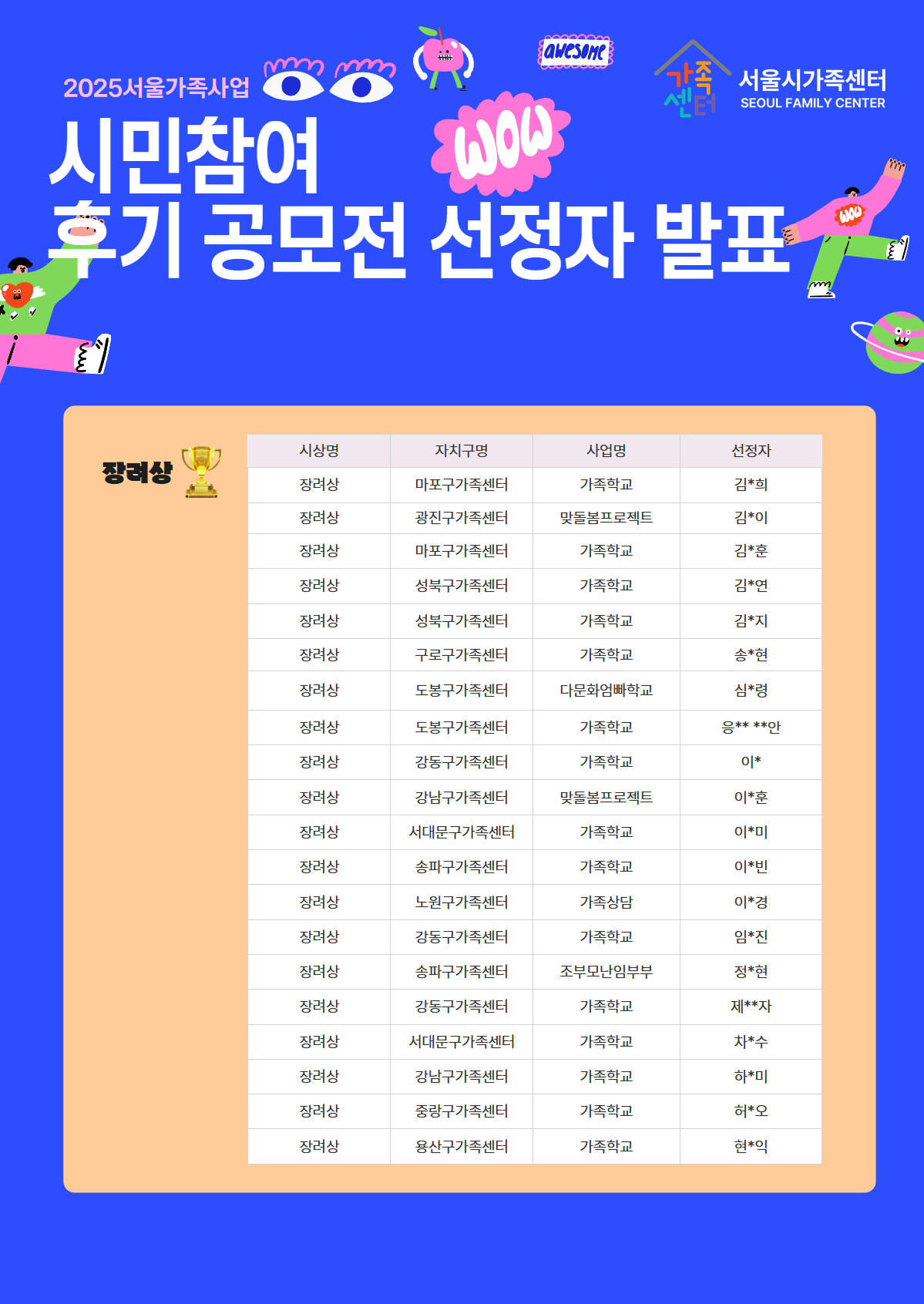 2025서울가족사업 참여후기 공모전 선정 안내