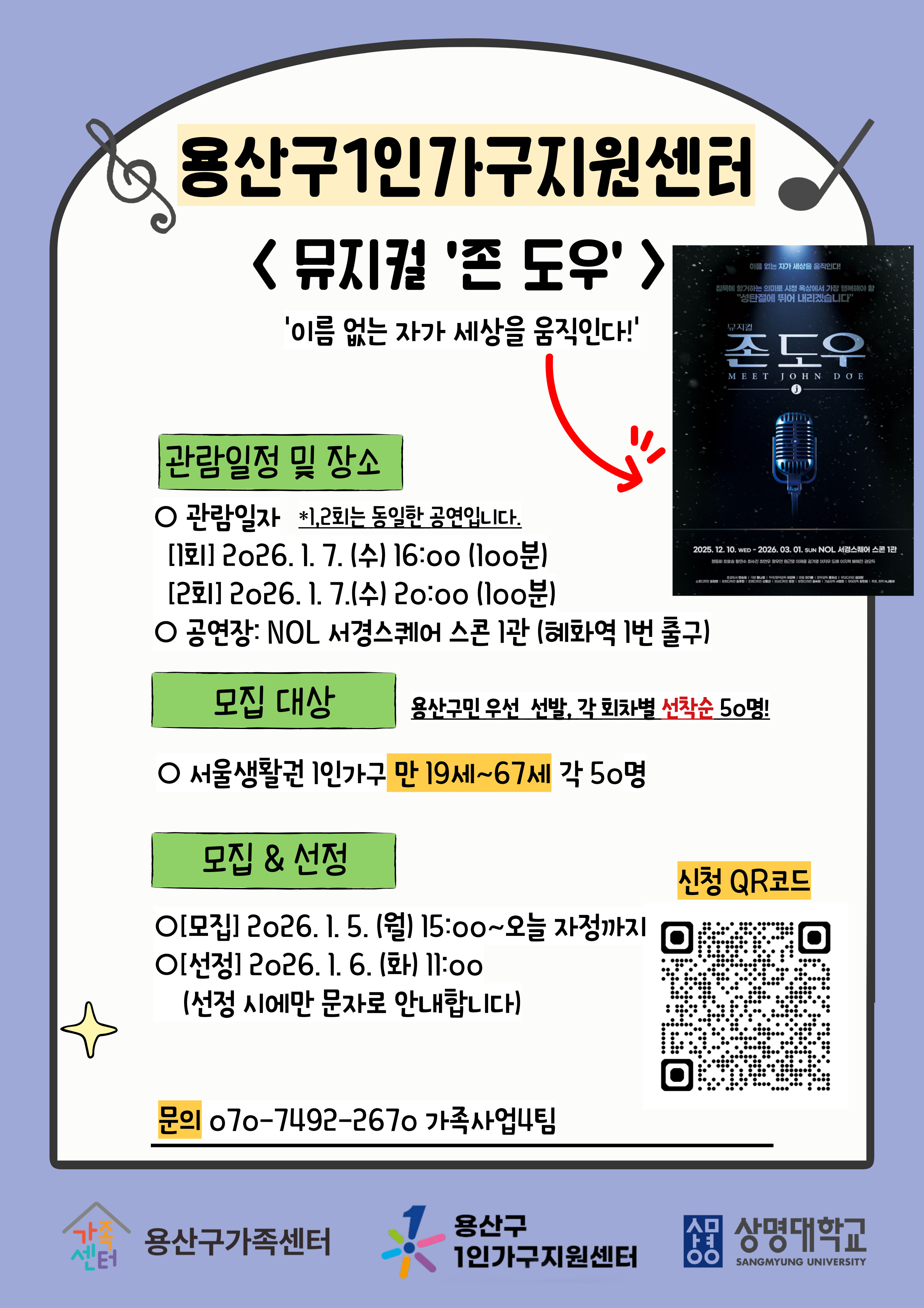 - 용산구[용산구] 뮤지컬 "존 도우" 관람 신청