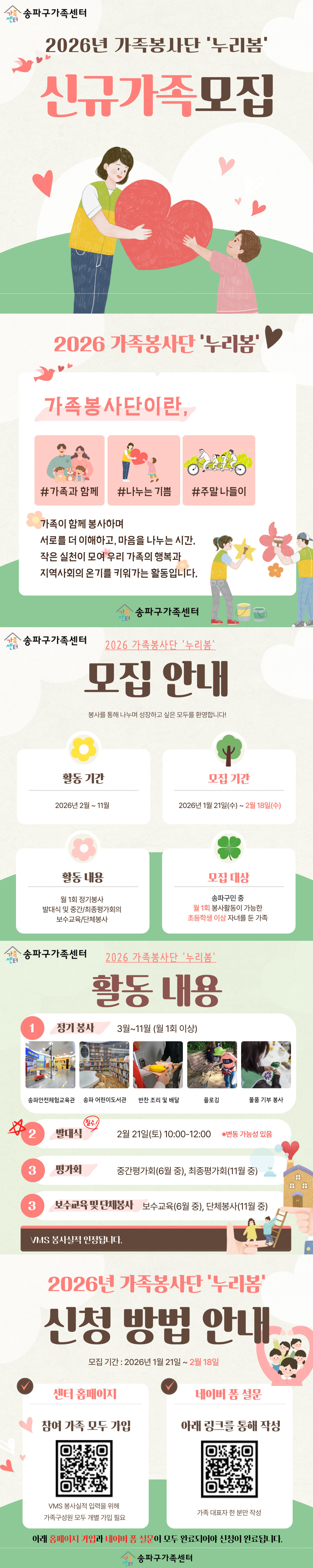[송파구] 2026년 가족봉사단 '누리봄' 신규가족 모집