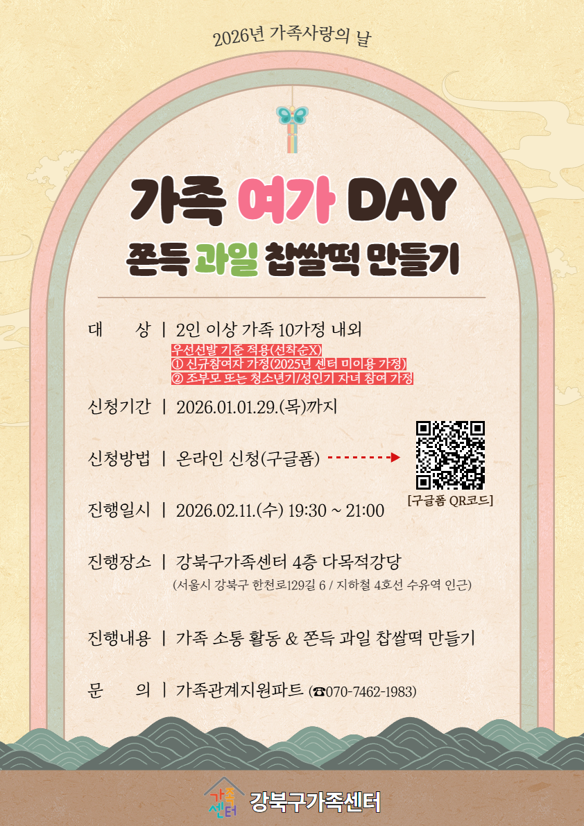 강북구가족센터에서 <2026년 가족 사랑의 날>을 운영합니다.