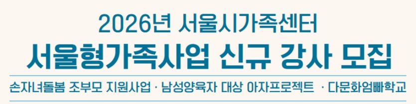 2026년 서울형가족사업 강사 모집공고 (~2.5.(목)까지)