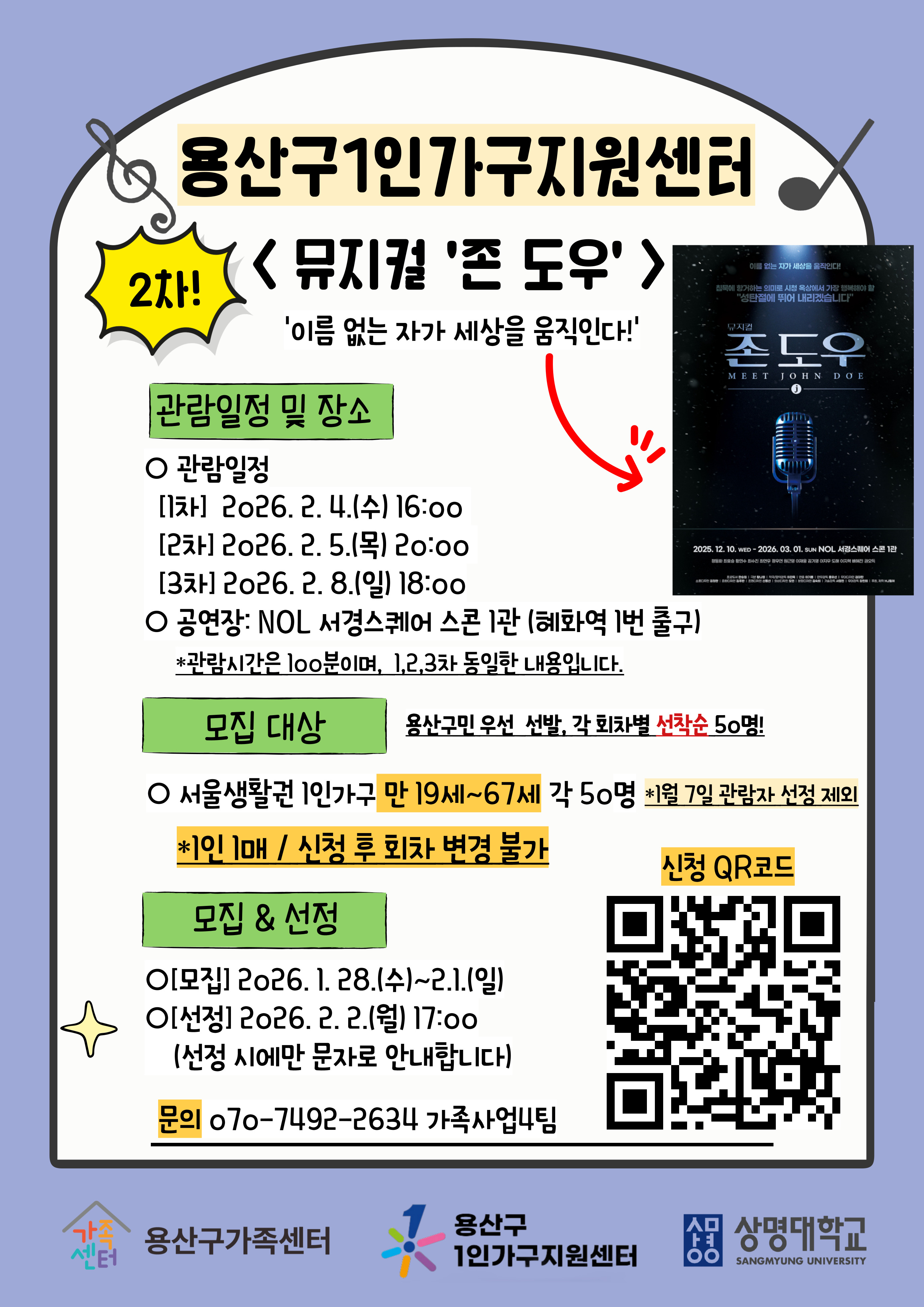 [용산구] 1인가구 뮤지컬 '존 도우' 2차 관람