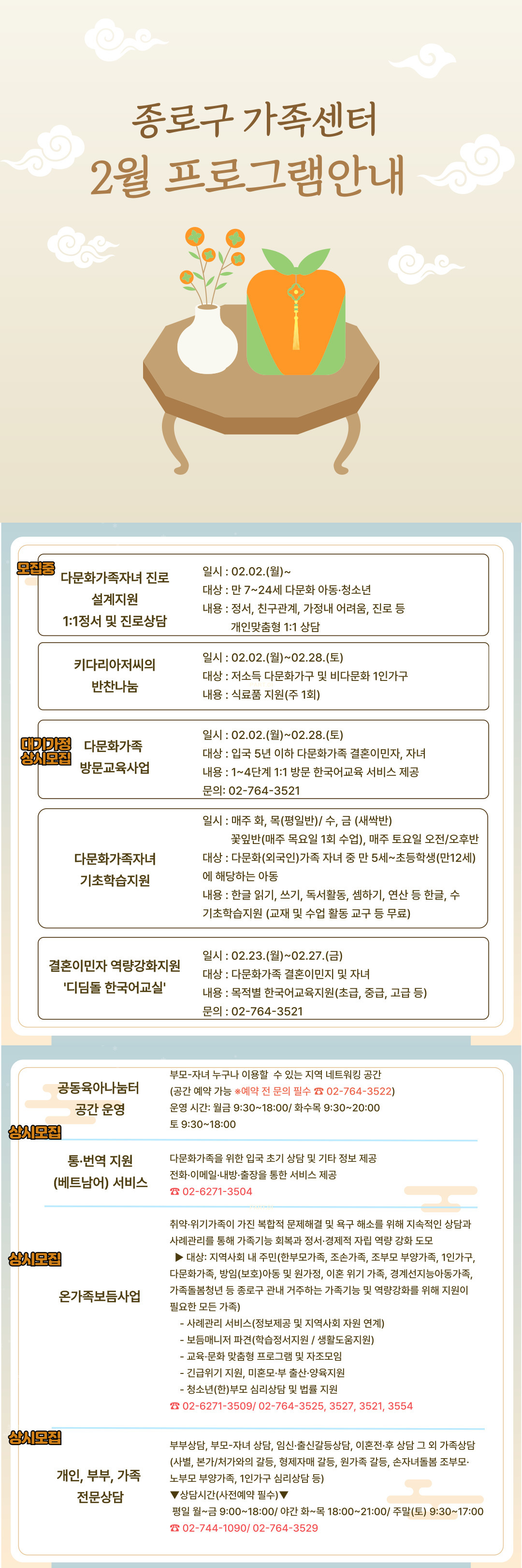 [종로구] 2026년 2월 센터프로그램안내(한국어, 중국어, 베트남어)