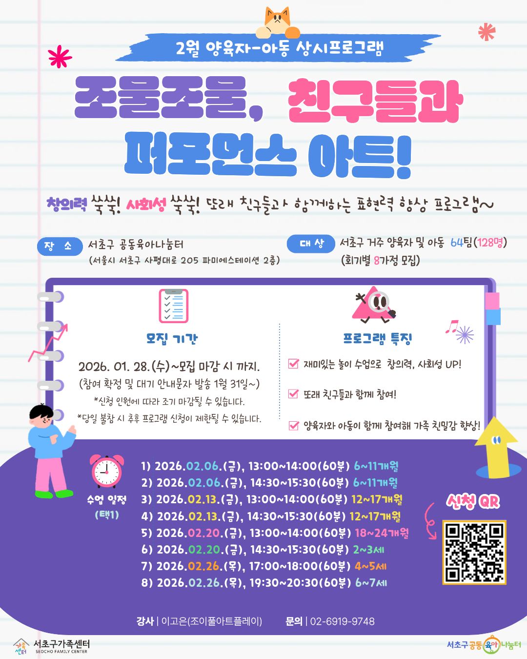 [์์ด๊ตฌ๊ฐ์กฑ์ผํฐ] 2์ ์์ก์-์๋ ์์ ํ๋ก๊ทธ๋จ ๋ชจ์ง ์๋ด(์กฐ๋ฌผ์กฐ๋ฌผ, ์น๊ตฌ๋ค๊ณผ ํผํฌ๋จผ์ค ์ํธ!))