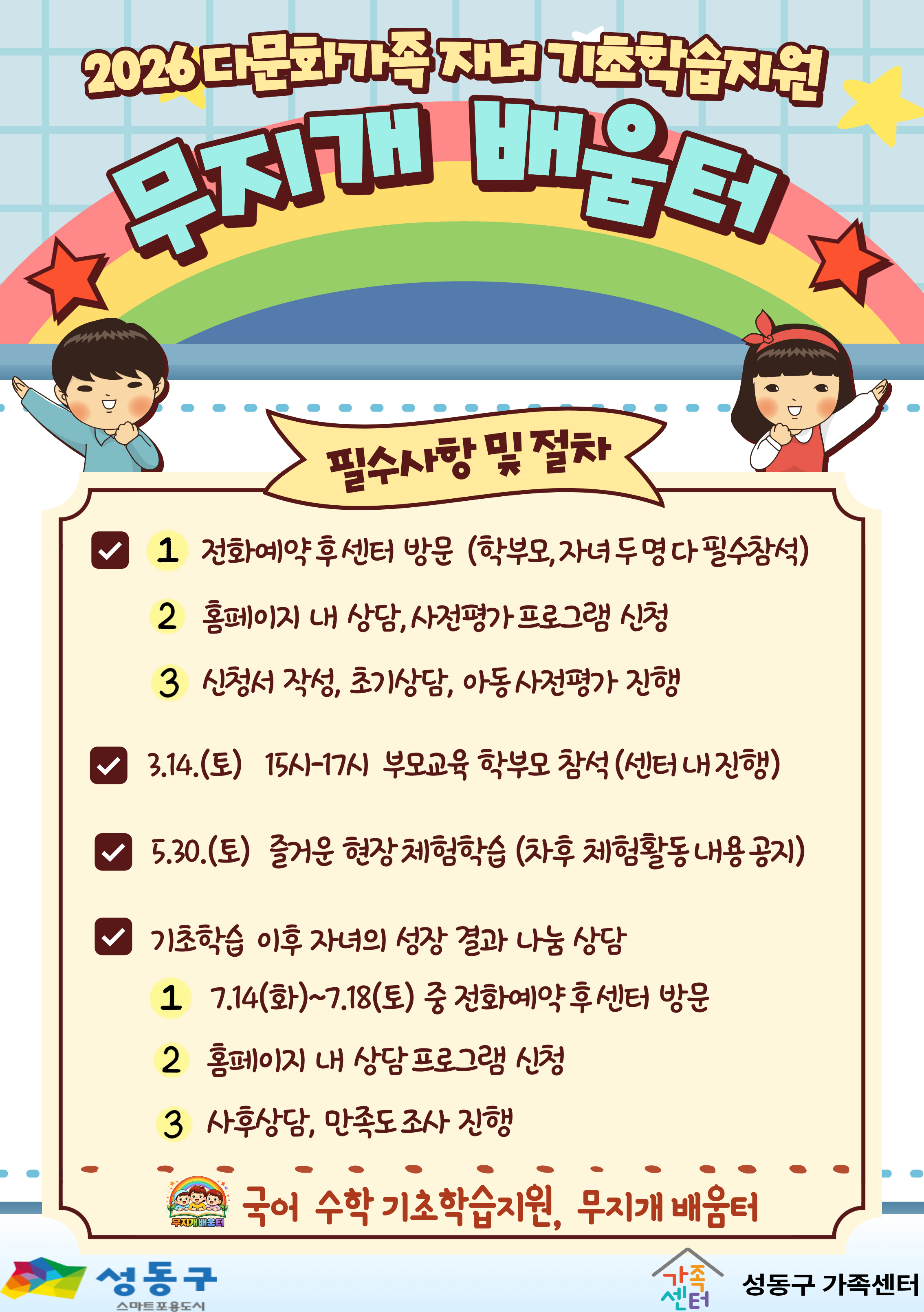 - 성동구[성동구]2026 다문화가족 자녀 기초학습지원 국어,수학 2학년 토요일반 신청접수중
