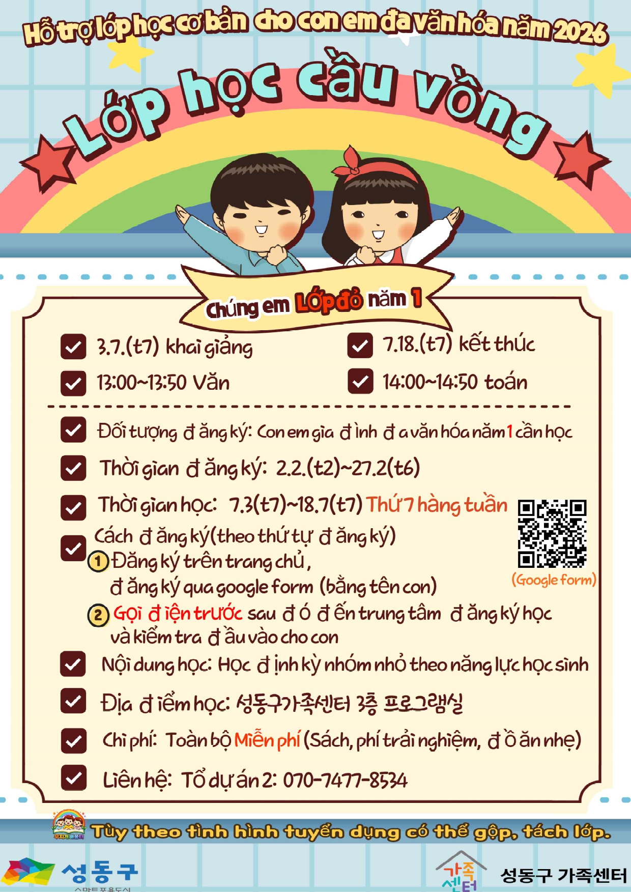- 성동구[성동구]2026 다문화가족 자녀 기초학습지원 한글,수학 1학년 토요일반 신청접수중