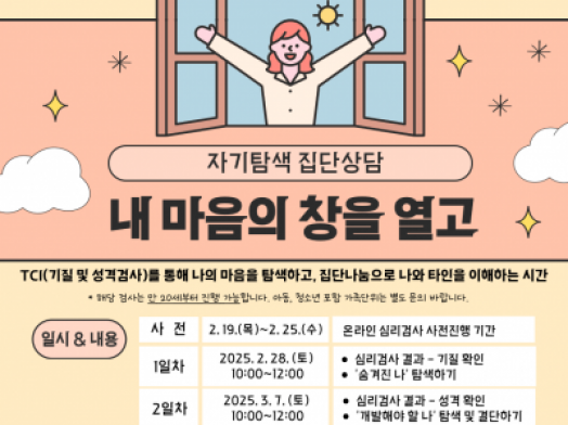 - 용산구[용산구] 자기탐색 집단상담 "내 마음의 창을 열고"