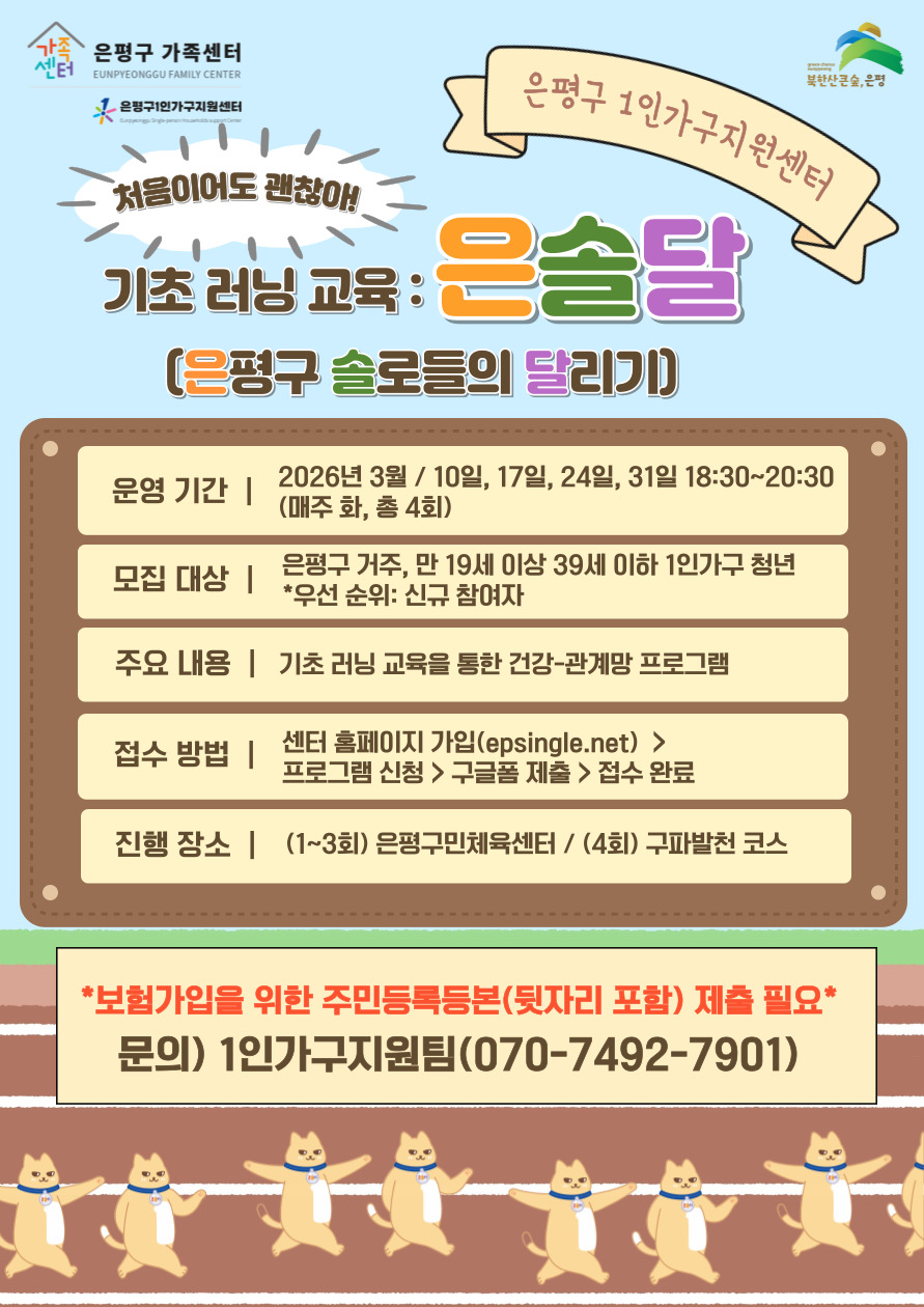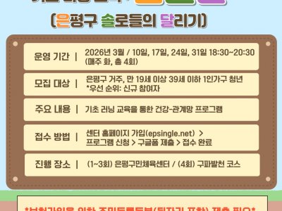 - 은평구[은평구] 브라보은솔라이프: 기초 러닝 교육 '은솔달(은평구 솔로들의 달리기') 참여자 모집