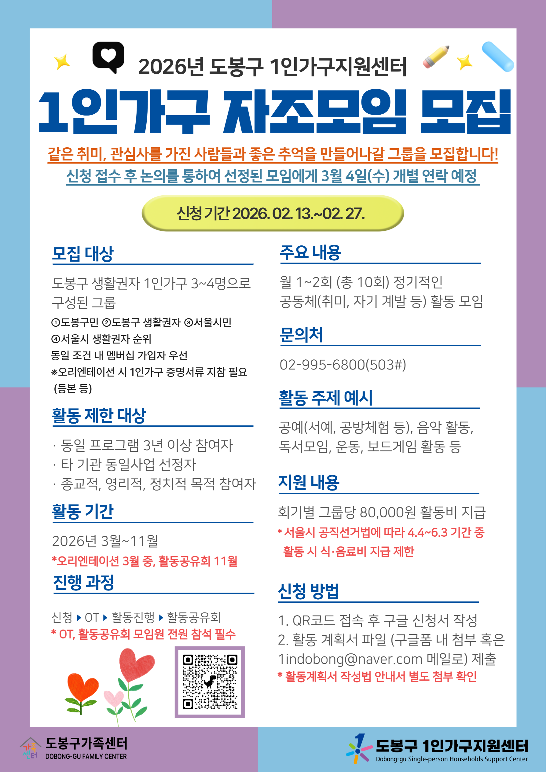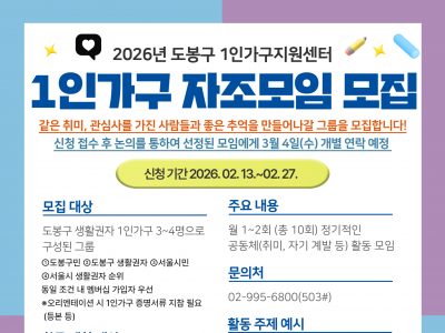 2026년 도봉구 1인가구 자조모임 신규 그룹을 모집 합니다!