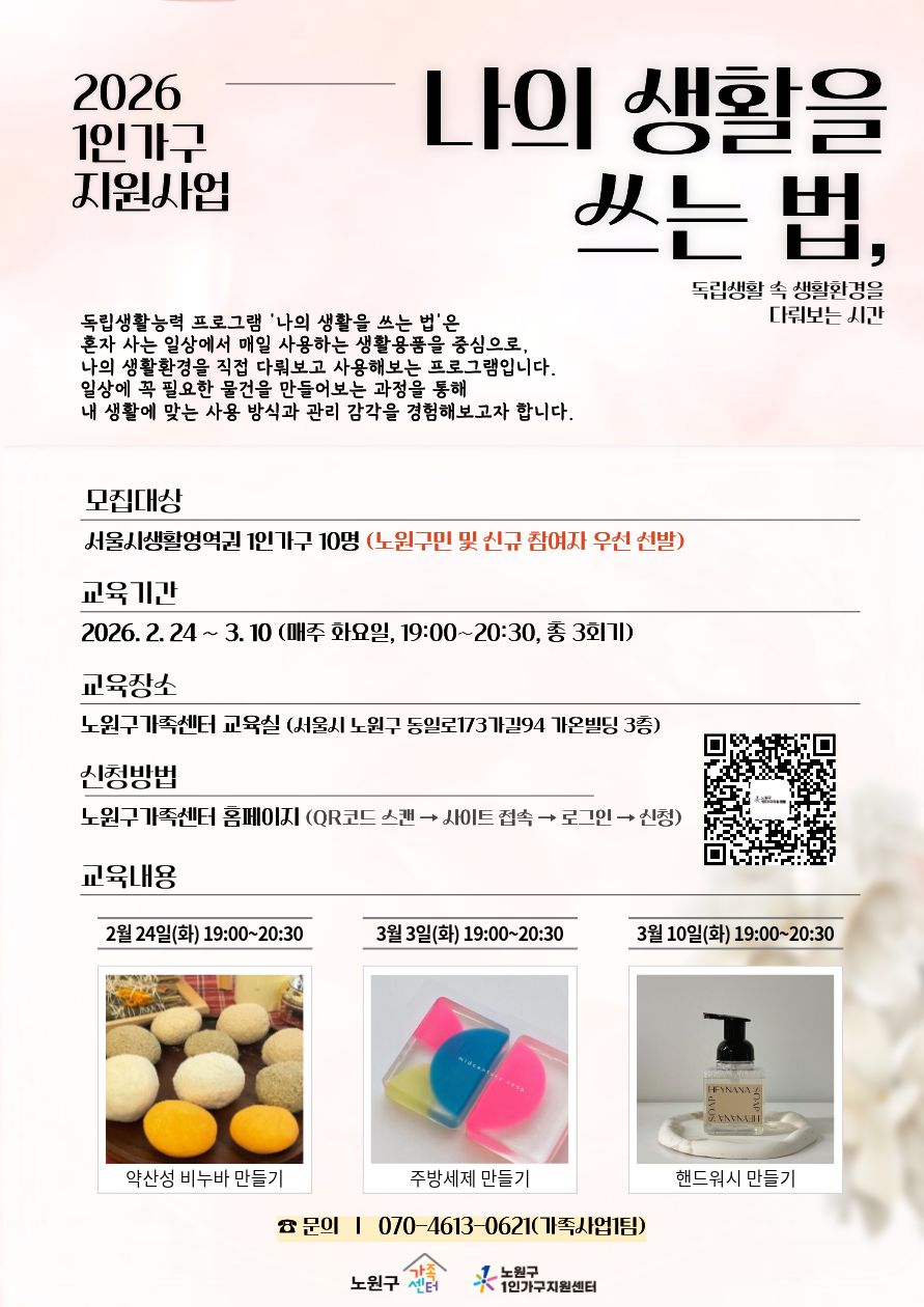 - 신청방법 : 노원구가족센터 홈페이지 신청
