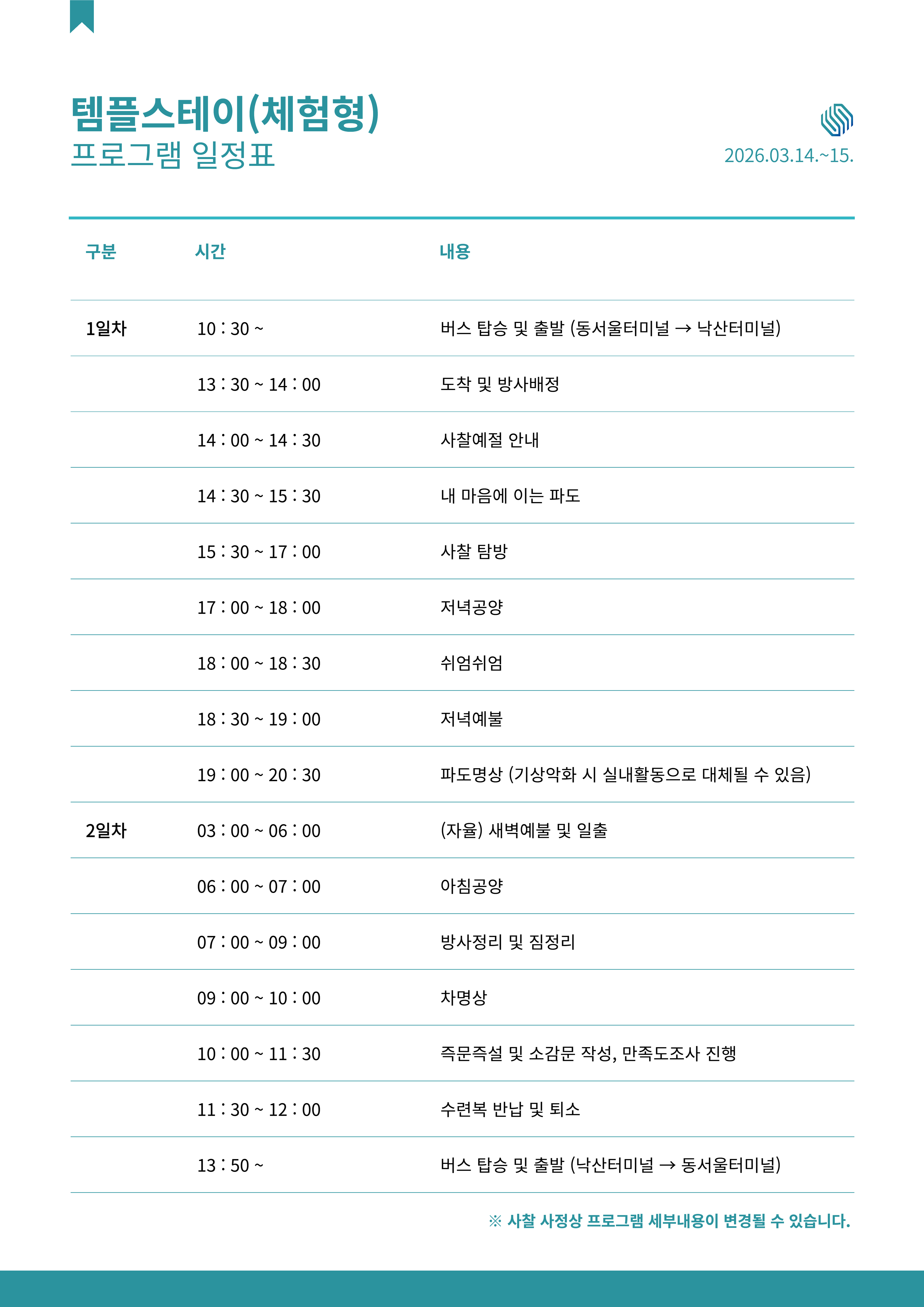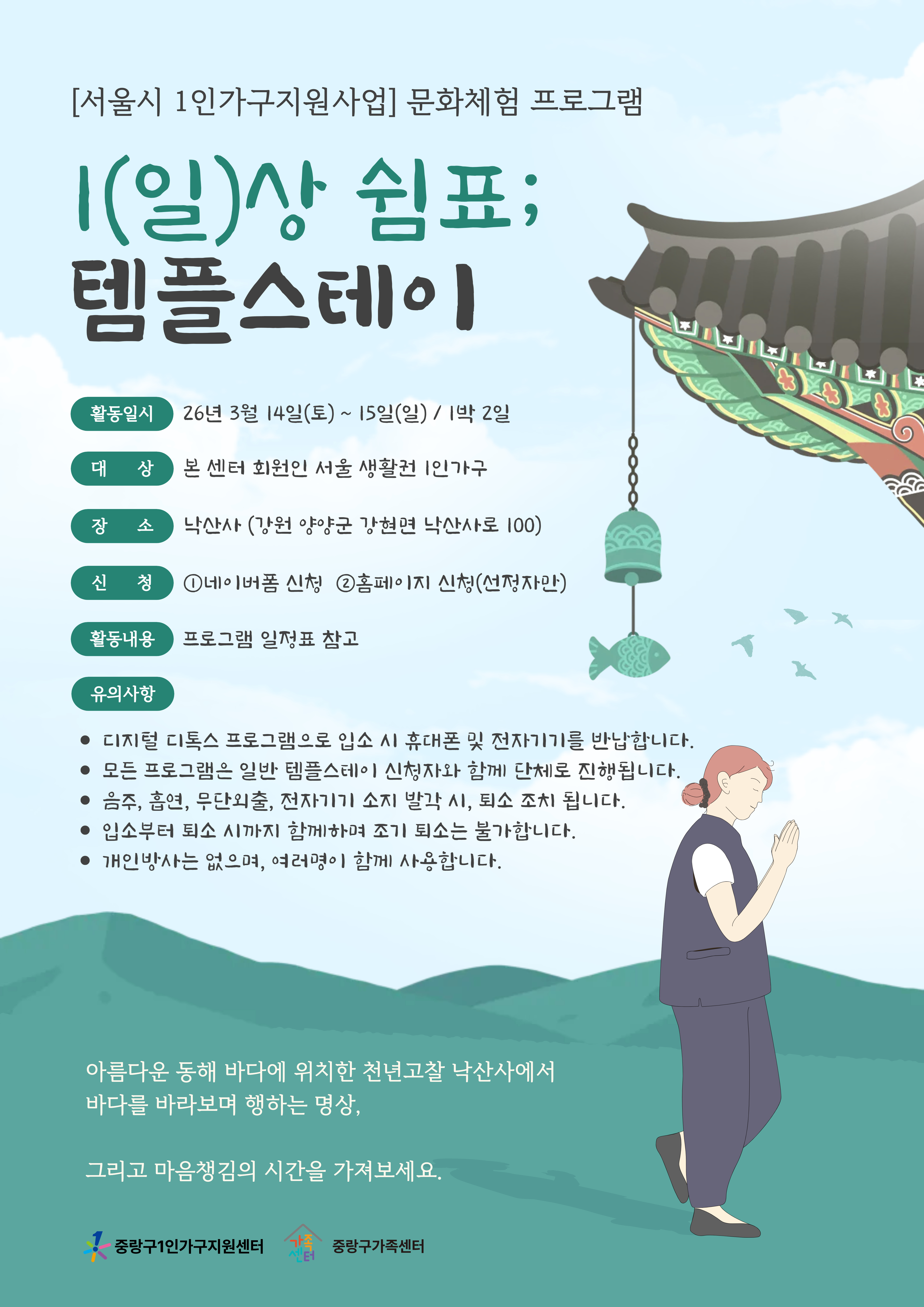 - 중랑구[중랑구] 문화체험 프로그램: 1(일)상 쉼표 '템플스테이'