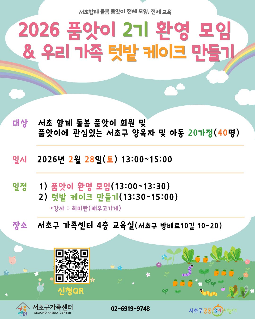 - 서초구[서초구가족센터] 2026 품앗이 2기 환영 모임&우리 가족 텃밭 케이크 만들기 참여자 모집 안내