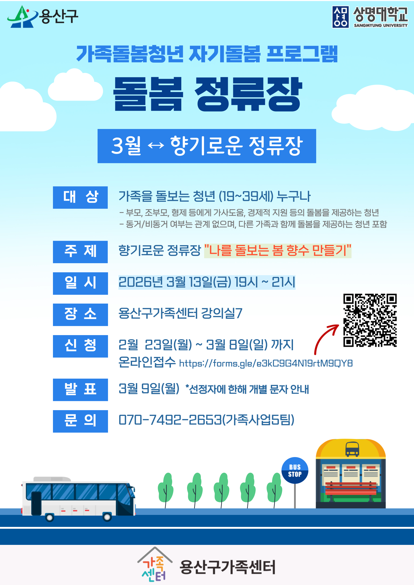 - 가족을 돌보는 청년(19~39세) 누구나 용산구가족센터 강의실7