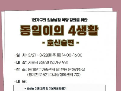 - 서울시 생활권 1인가구 동대문구가족센터 제1센터 문화강좌