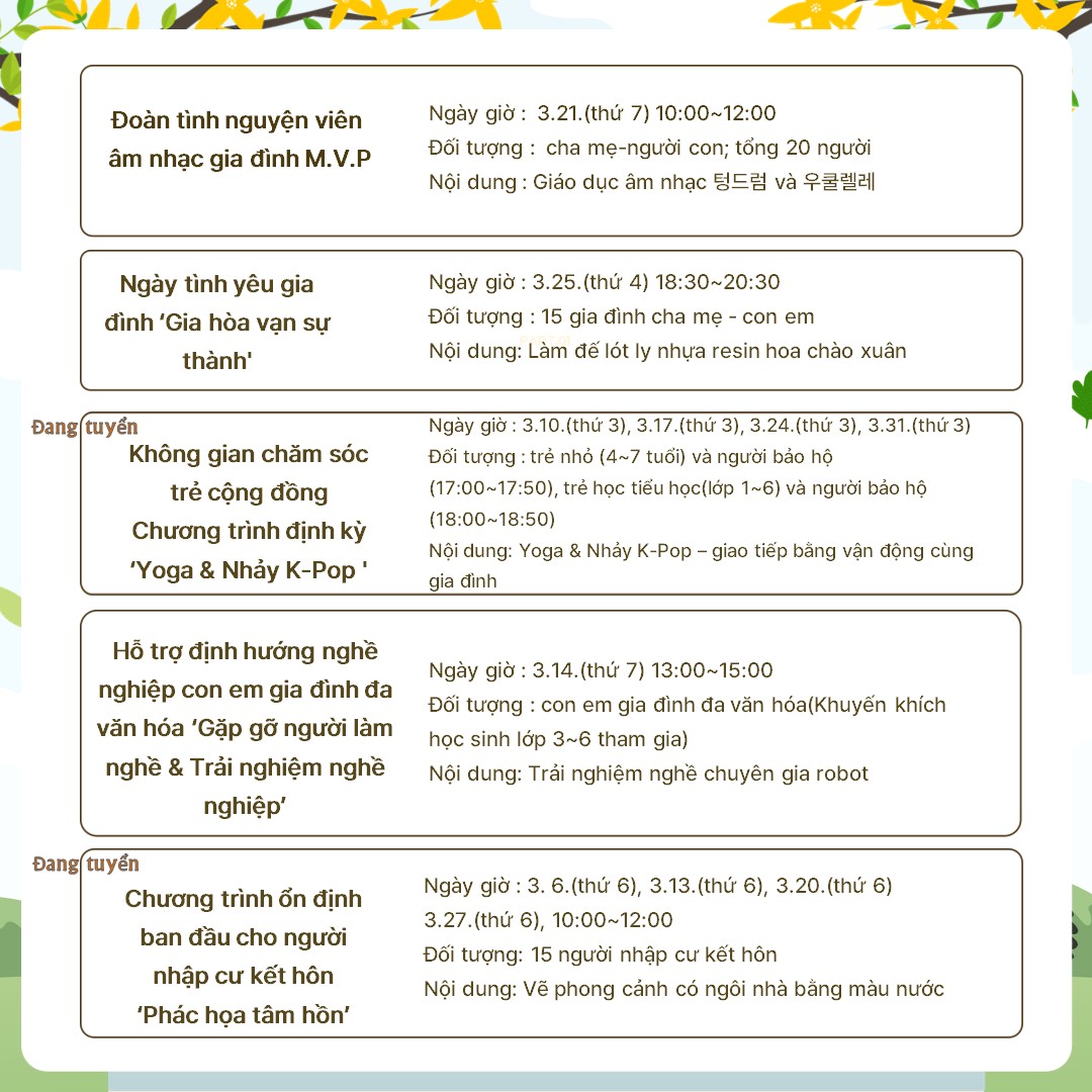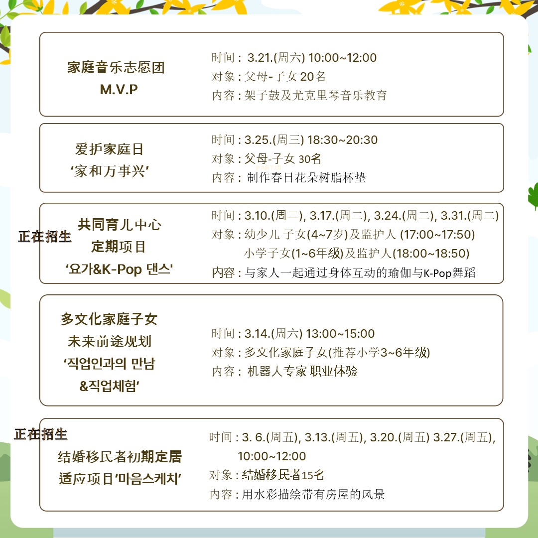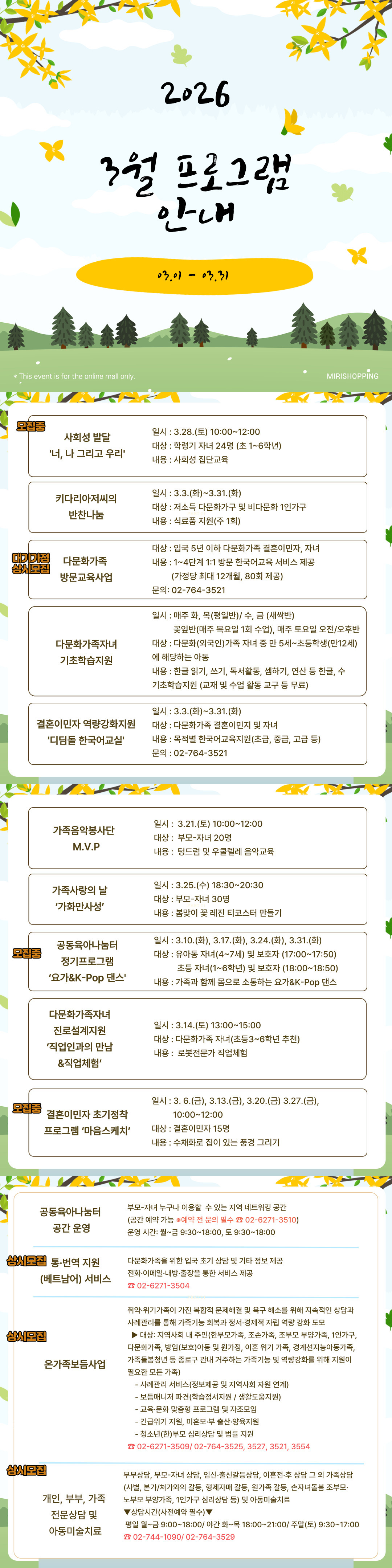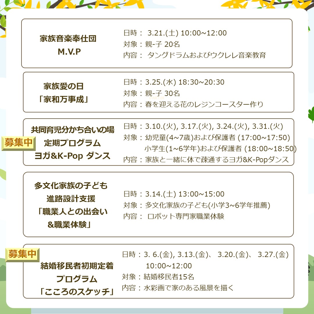 3월 센터 프로그램을 안내드리오니 많은 관심과 참여 부탁드립니다.