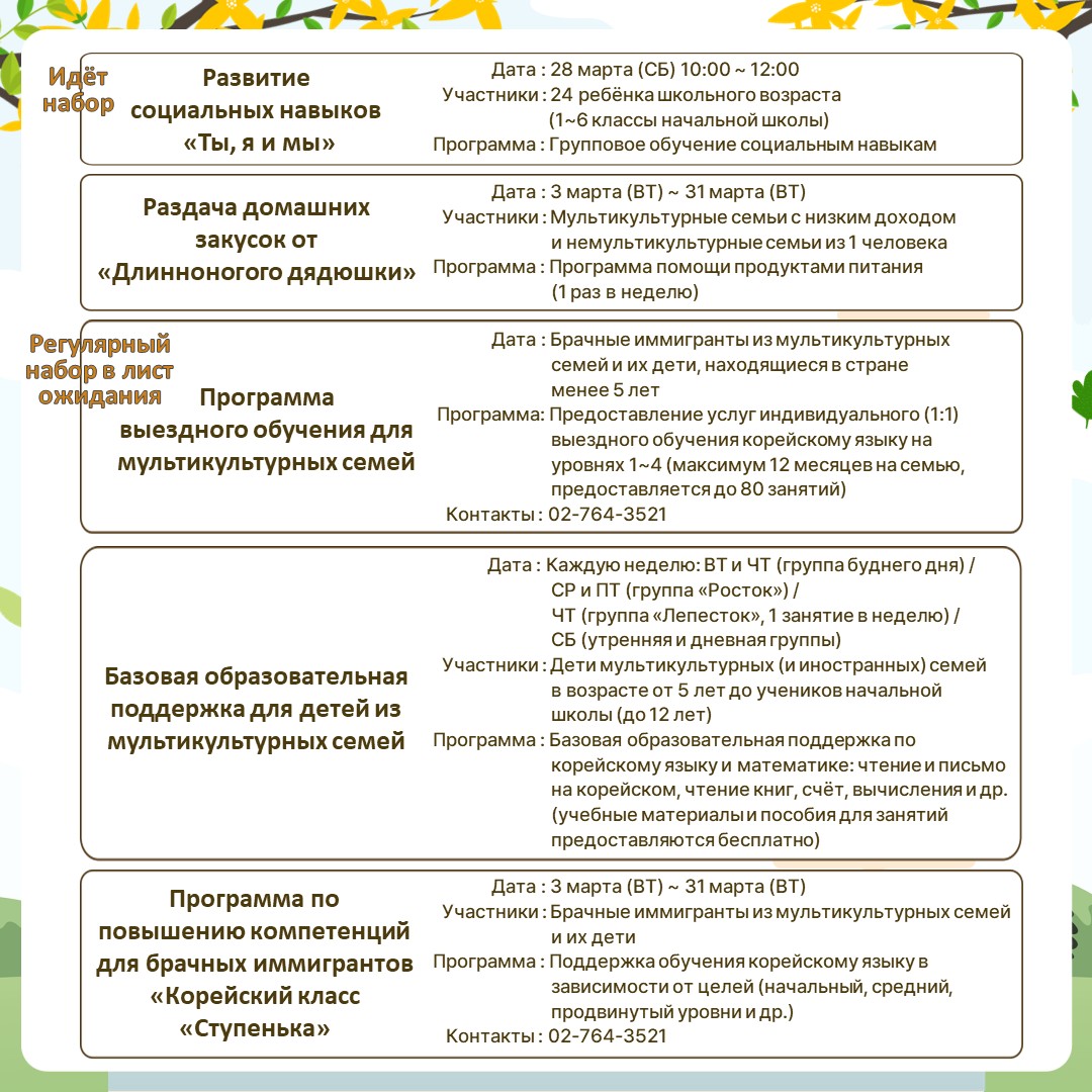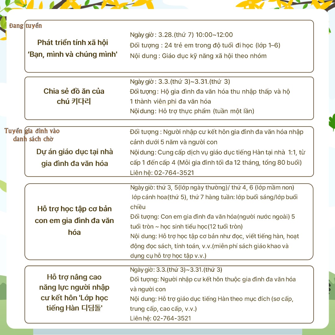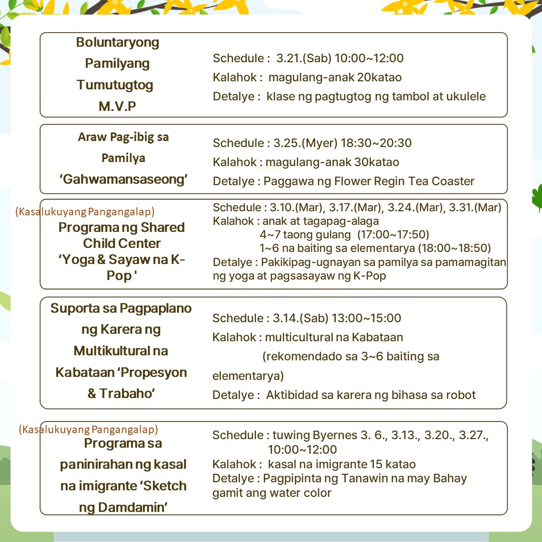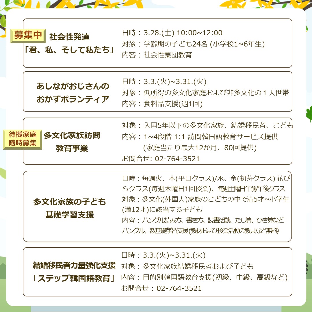 3월 센터 프로그램을 안내드리오니 많은 관심과 참여 부탁드립니다.