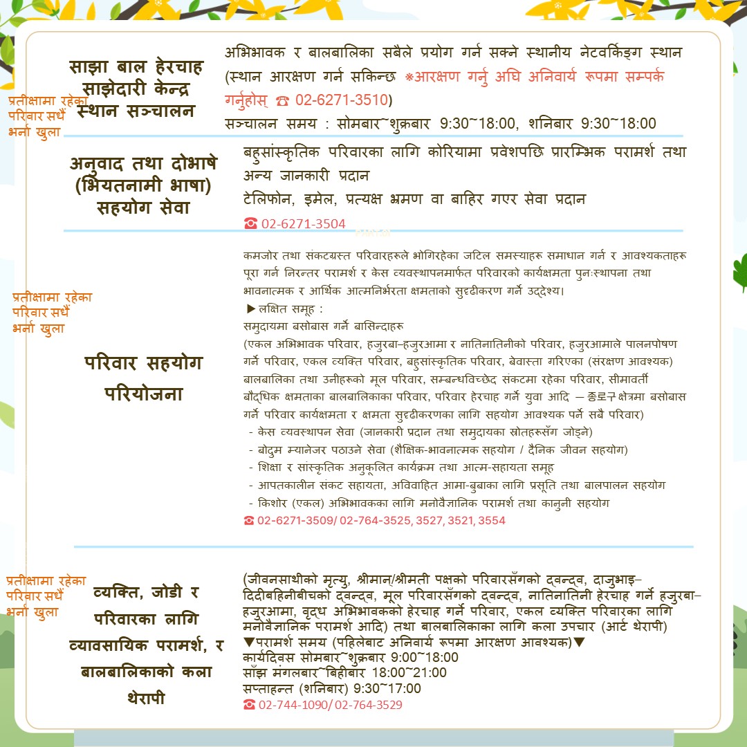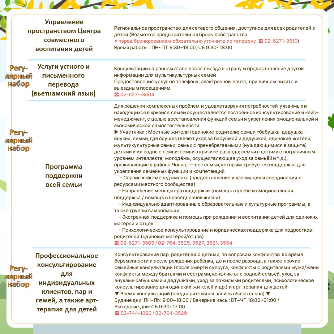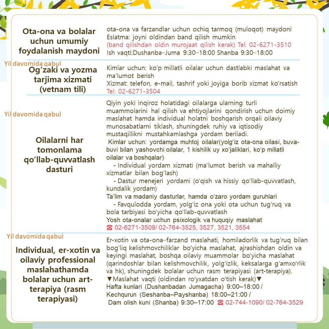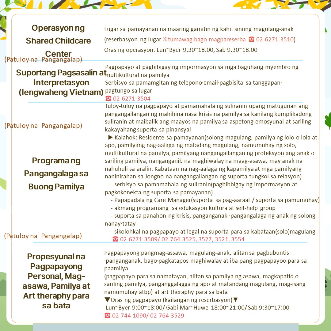 - 자녀 양육자 누구나 본 센터 2층 세미나실
