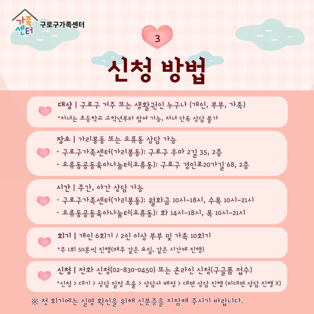 - 구로구[구로구] 개인 및 가족상담 신청 접수중