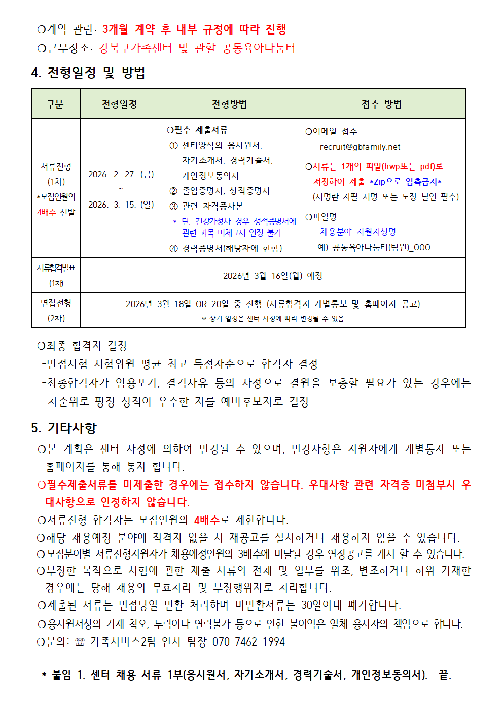 (제2026-01-003호) 2026년 강북구가족센터 직원 채용 공고