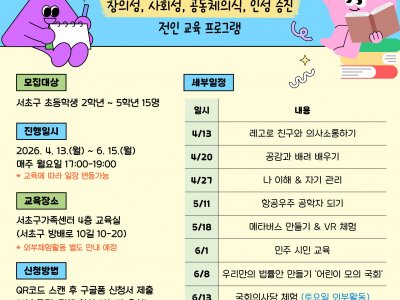 - 장소: 서초구가족센터 4층 교육실(서초구 방배로 10길 10-20)