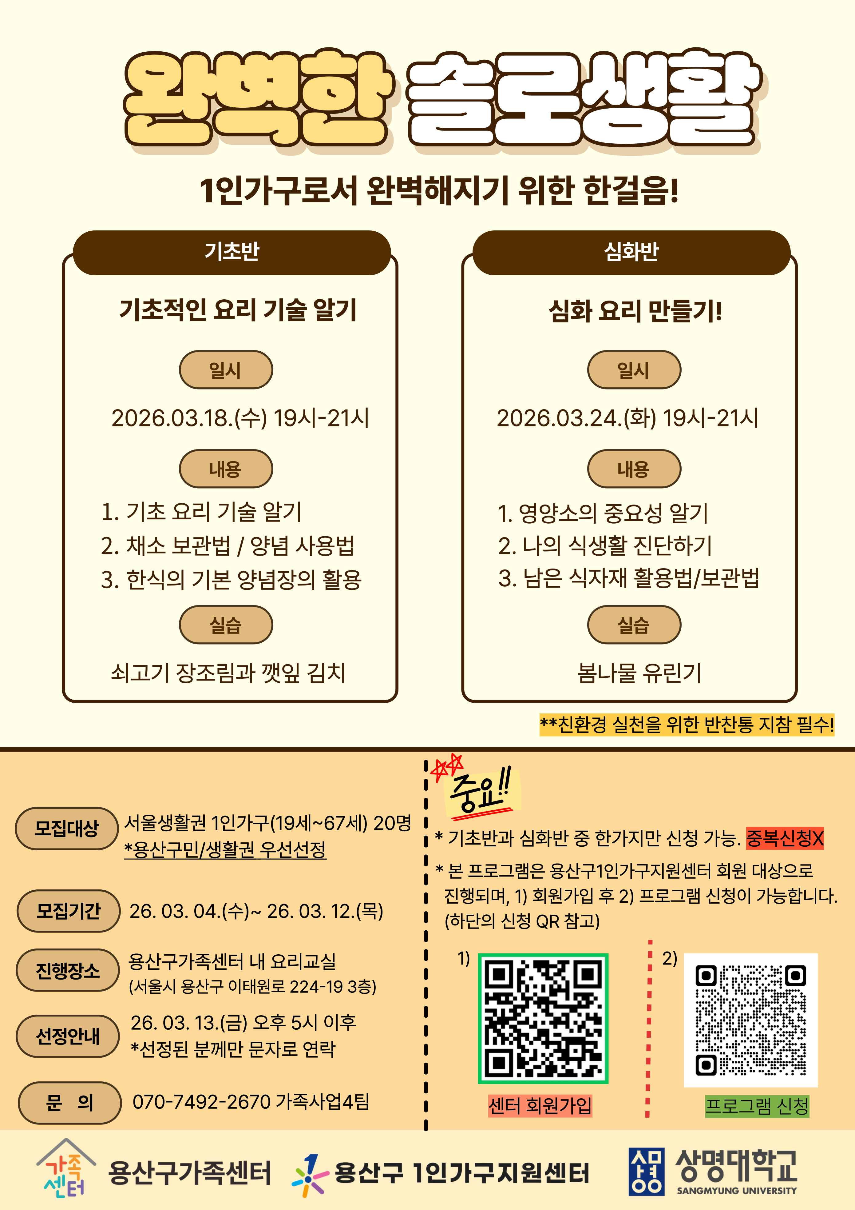 - 용산구[용산구] 3월 완벽한 솔로생활(기초반/심화반)