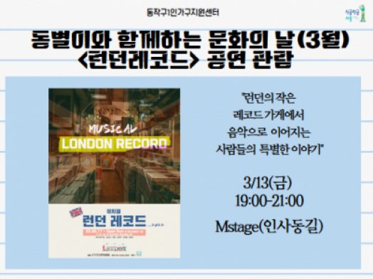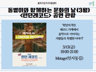 - 동작구[동작구]3월 동별이와 함께하는 문화의 날 <런던레코드> 공연관람