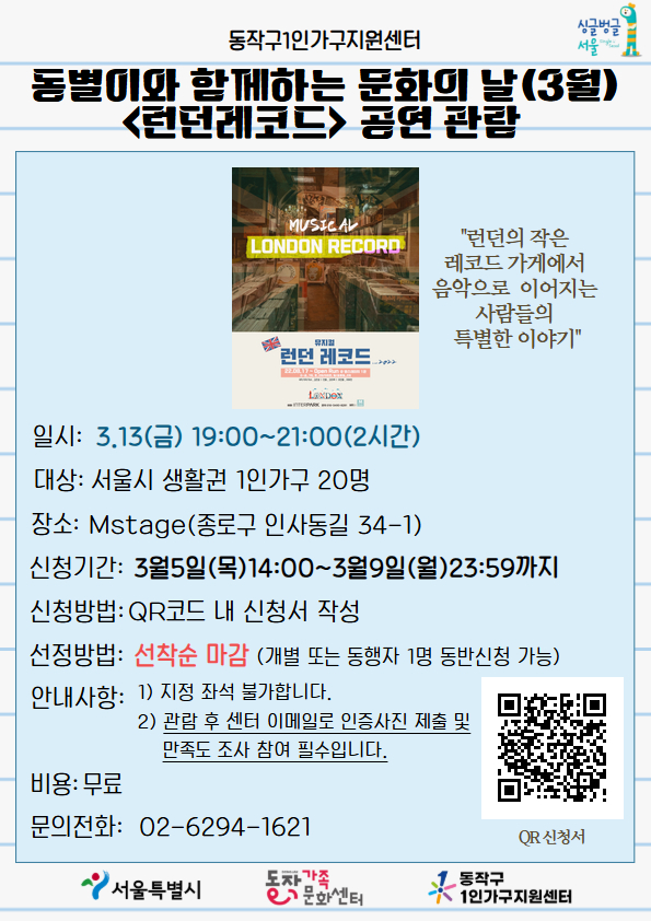 [동작구]3월 동별이와 함께하는 문화의 날 <런던레코드> 공연관람