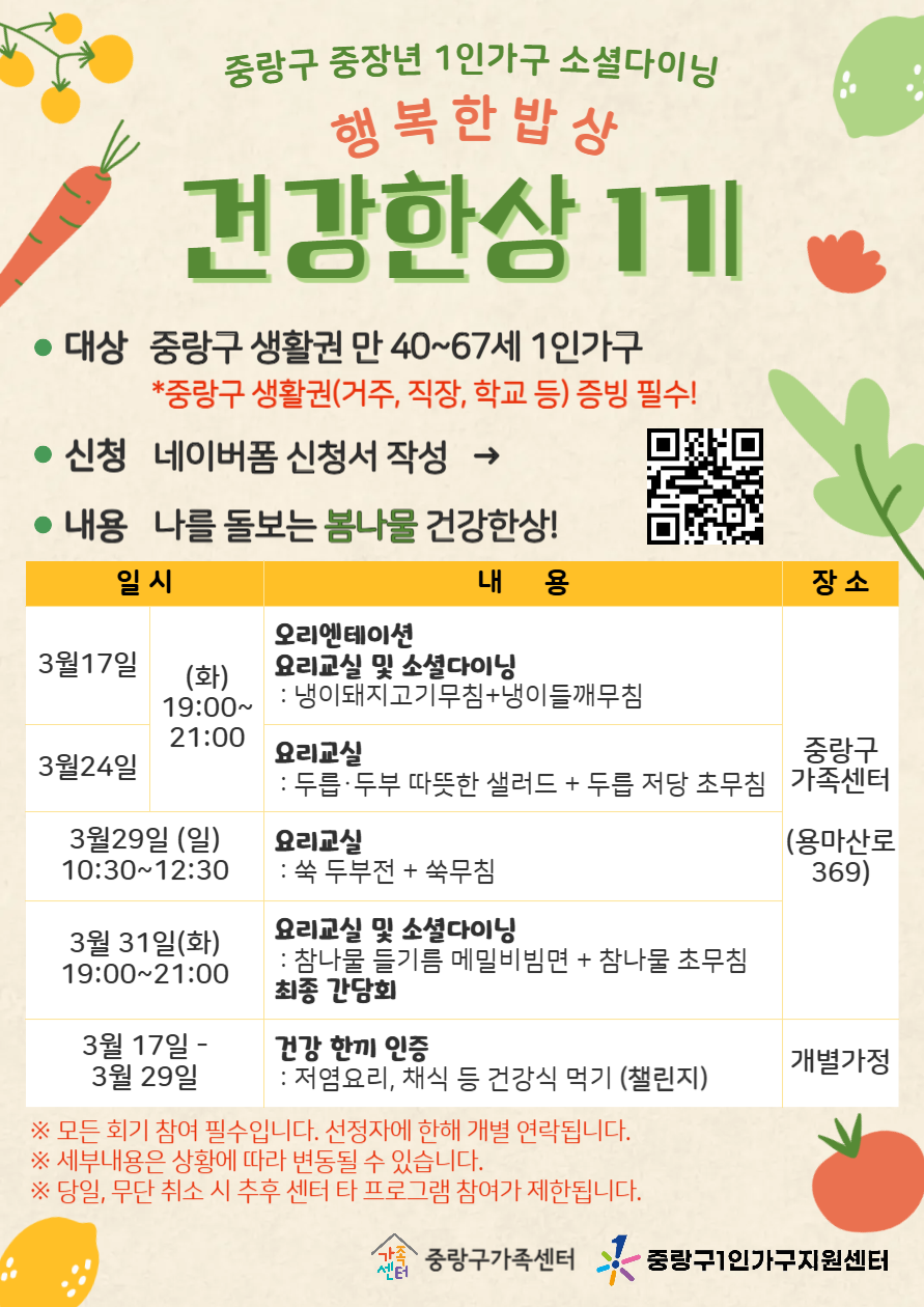 - 대상 : 중랑구 생활권 중장년 1인가구 (만 40~67세)