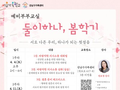 - 강남구[강남구] 2026 예비부부교실 <둘이하나, 봄학기>