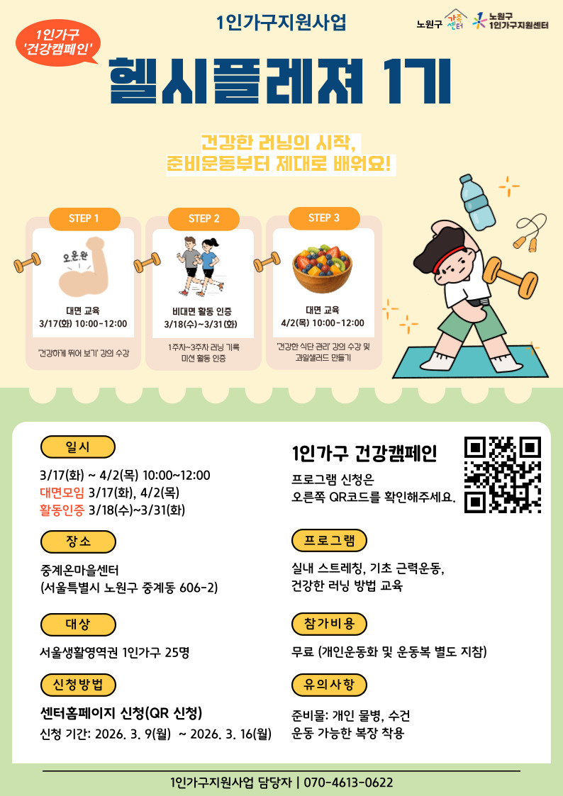 [노원구] 1인가구 건강캠페인 '헬시플레져' 참여자 모집중