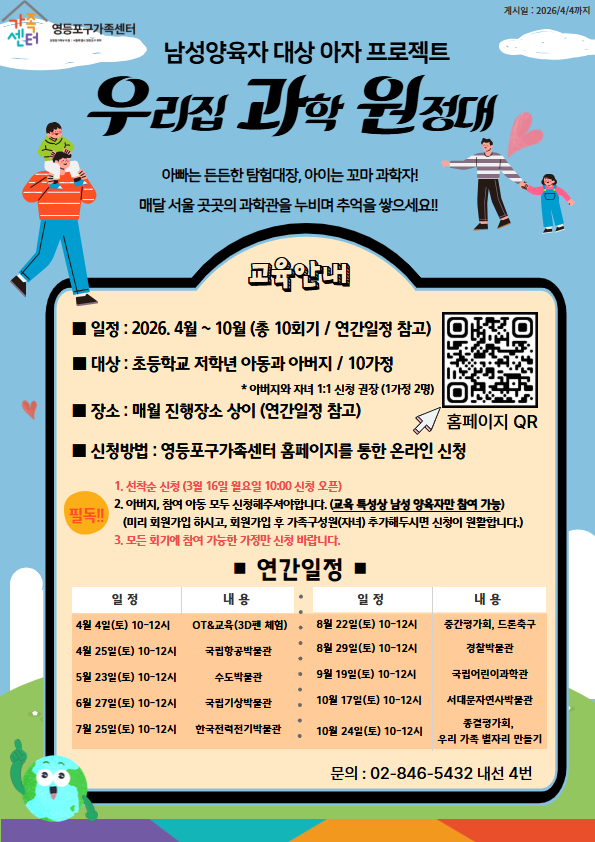 - 영등포구[영등포구] 2026년 남성양육자 대상 아자프로젝트 "우리집 과학 원정대" 참여자 모집