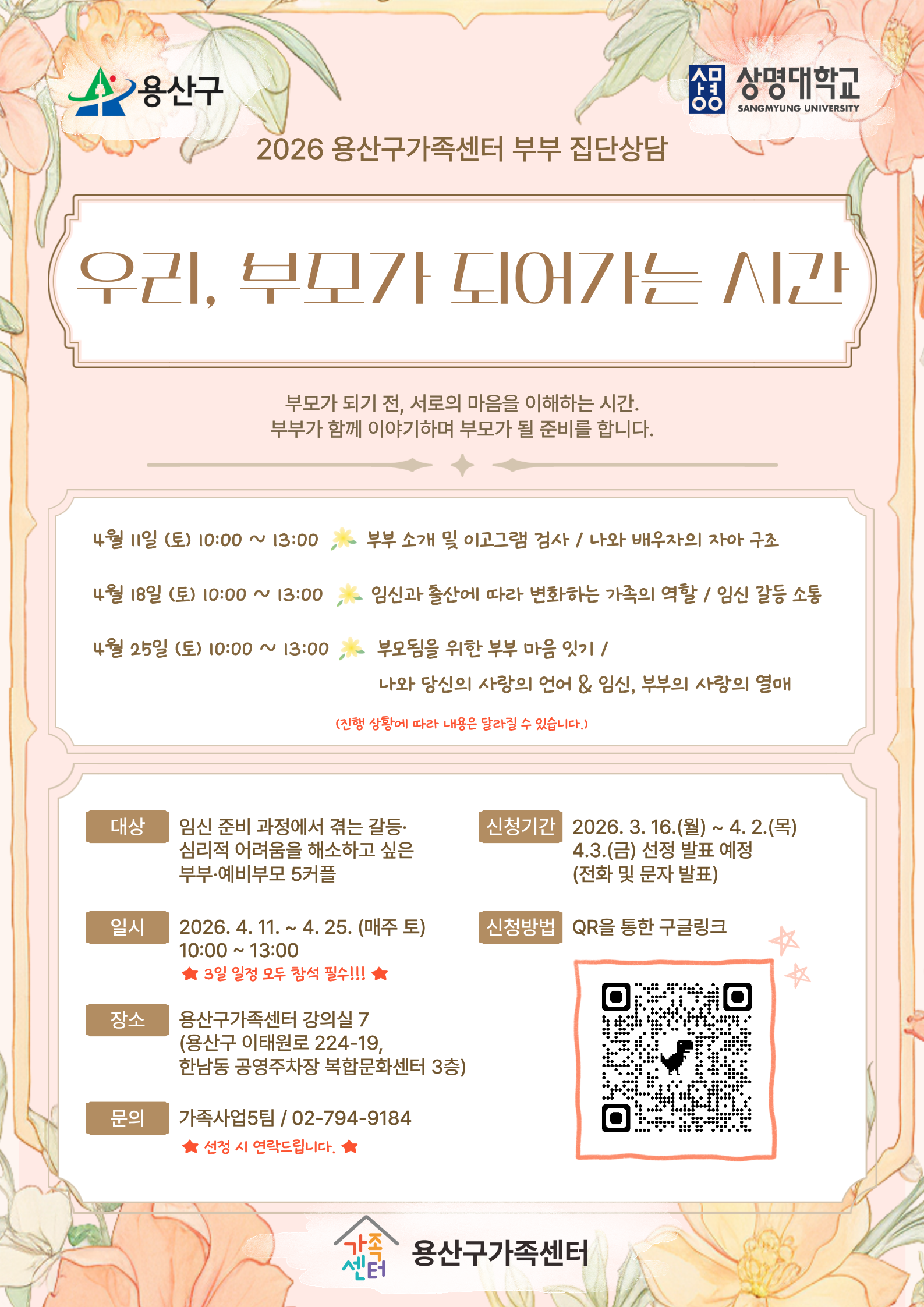 [용산구] 부부 집단상담 '우리, 부모가 되어가는 시간'