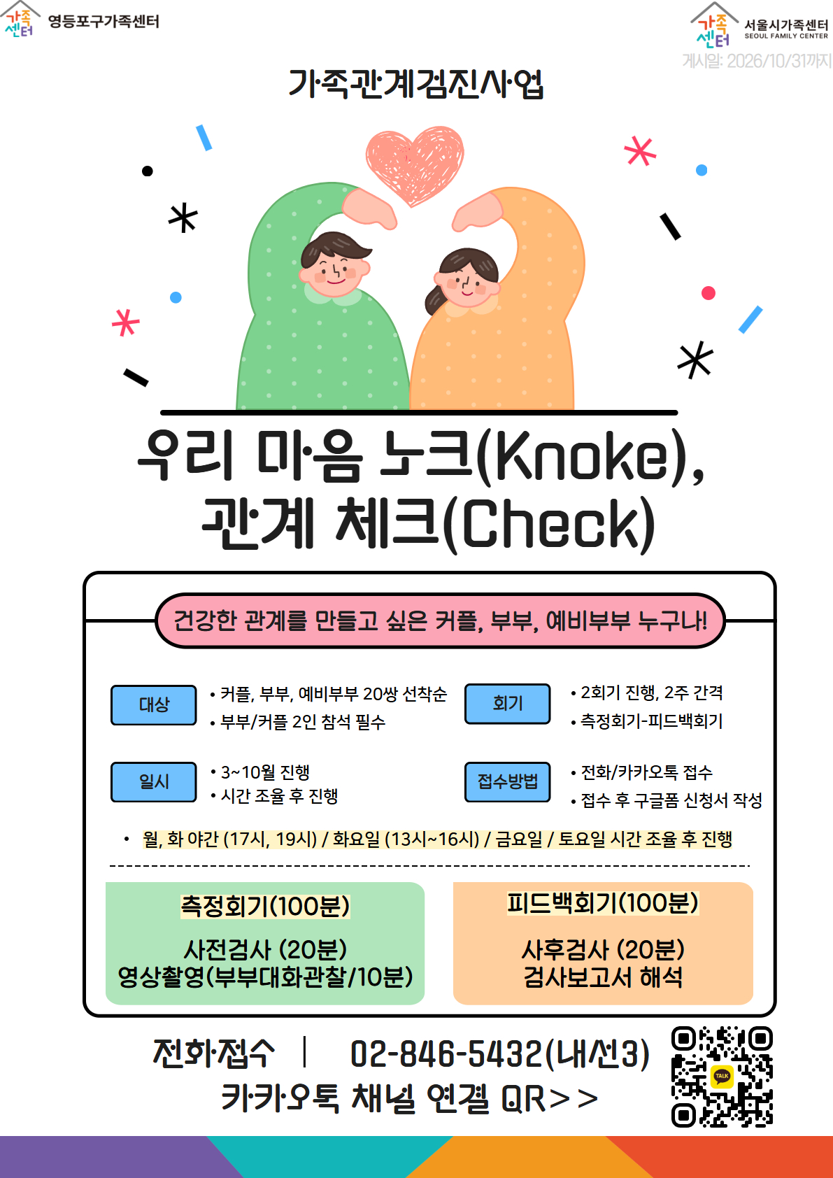 ■ 문의: 02-846-5432(내선3) 가족관계검진사업 담당자 / 카카오톡 채널