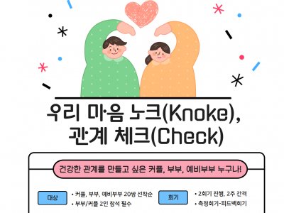 영등포구가족센터에서는가족관계검진사업 우리 마음 노크(Knocke), 관계 체크(Check)를 진행합니다.