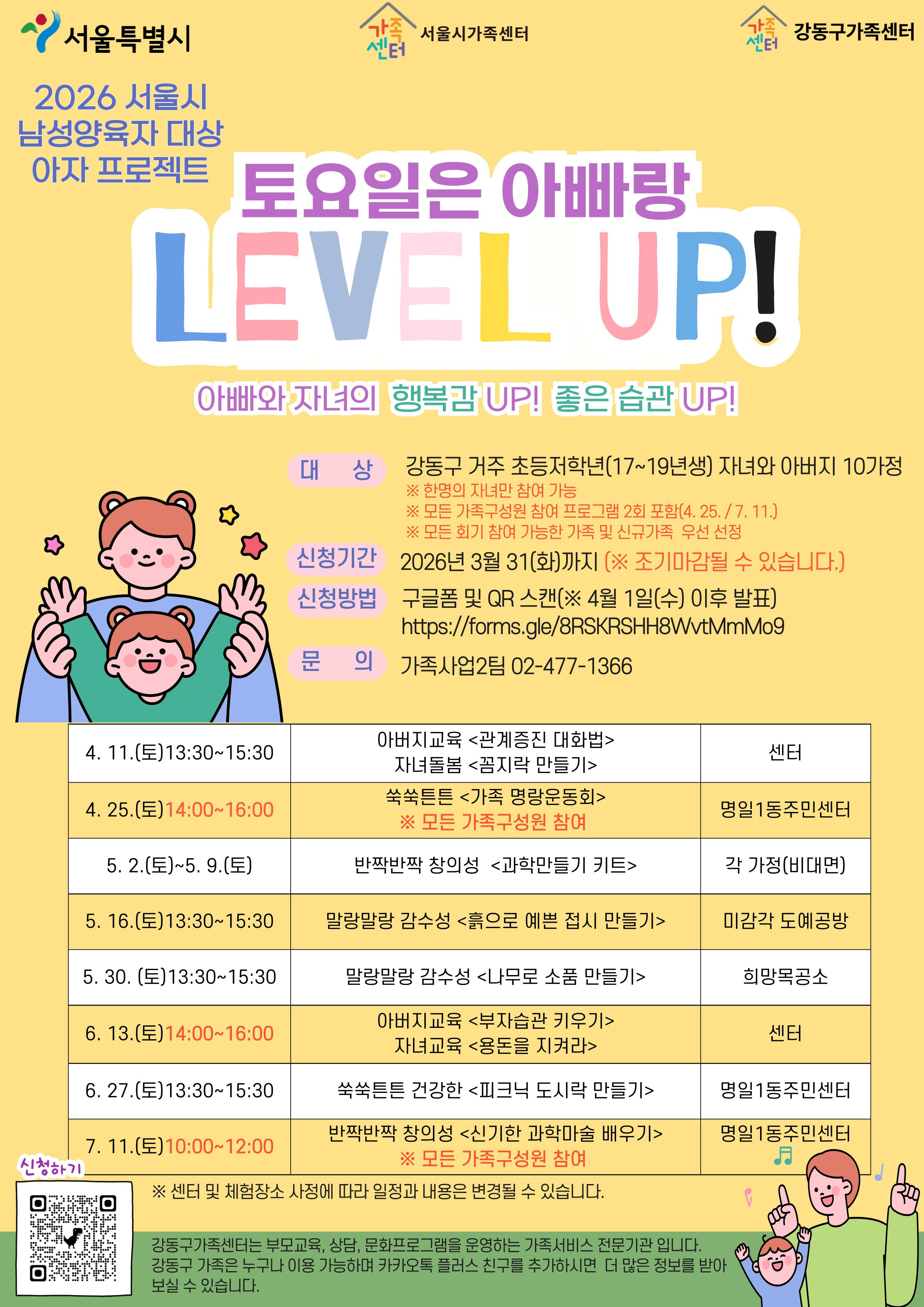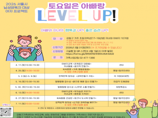 - 강동구[강동구] 2026 아자프로젝트 '토요일은 아빠랑 LEVEL UP!' 신청접수중