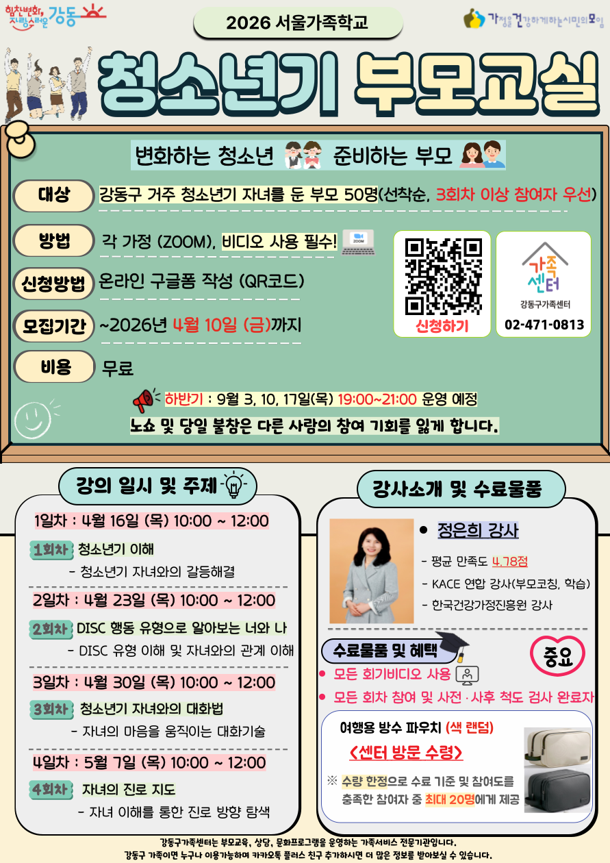[강동구] 2026 청소년기부모교실 참여자 모집