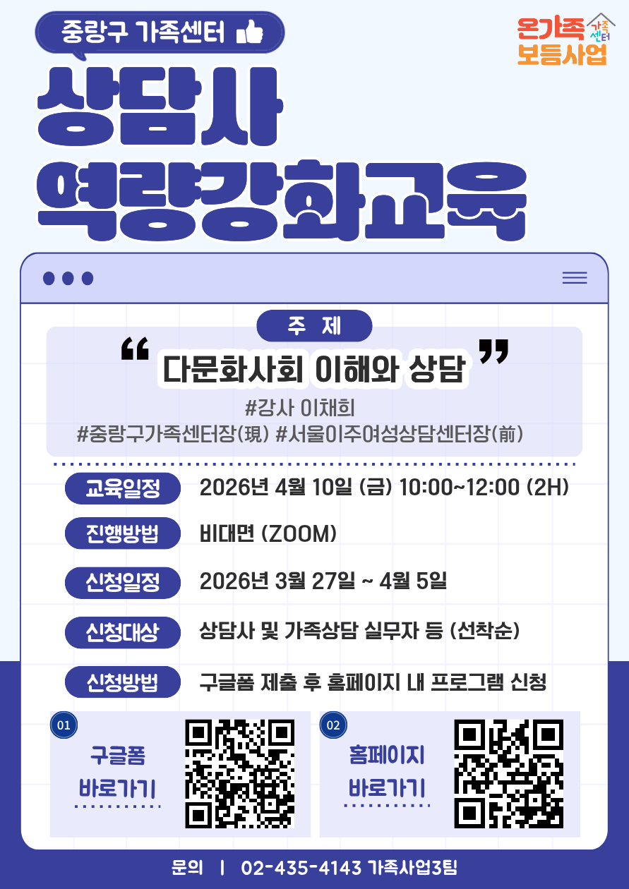 - 중랑구[중랑구] 2026 상담사역량강화교육 신청 안내