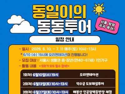 중장년 1인가구 야외 및 문화과학체험 <동일이의 동동투어> 참여자를 모집합니다!